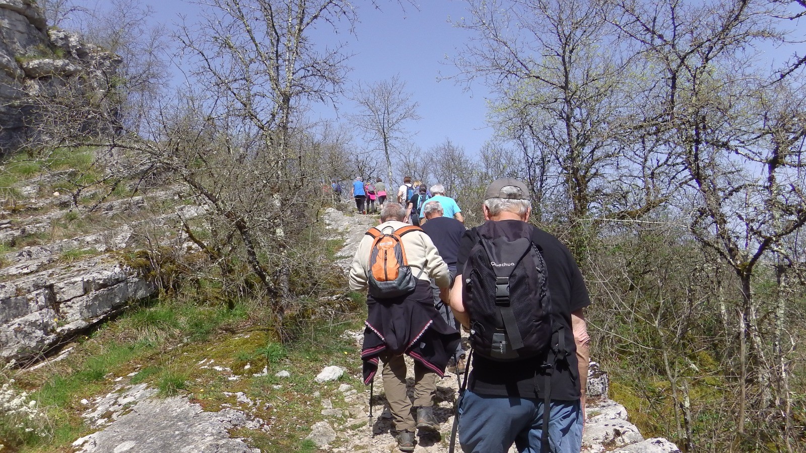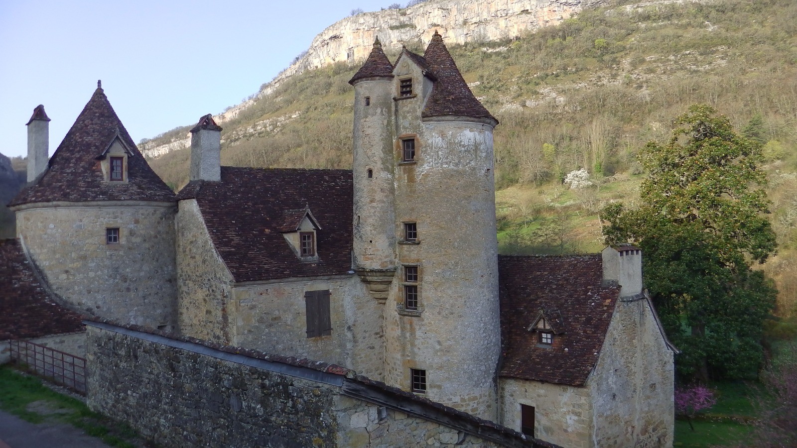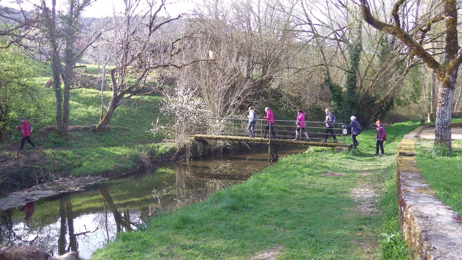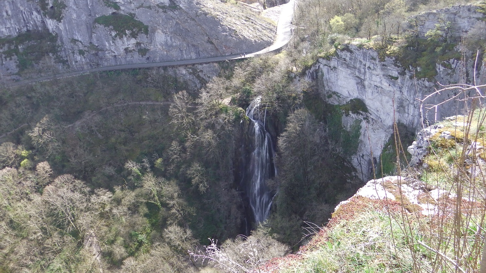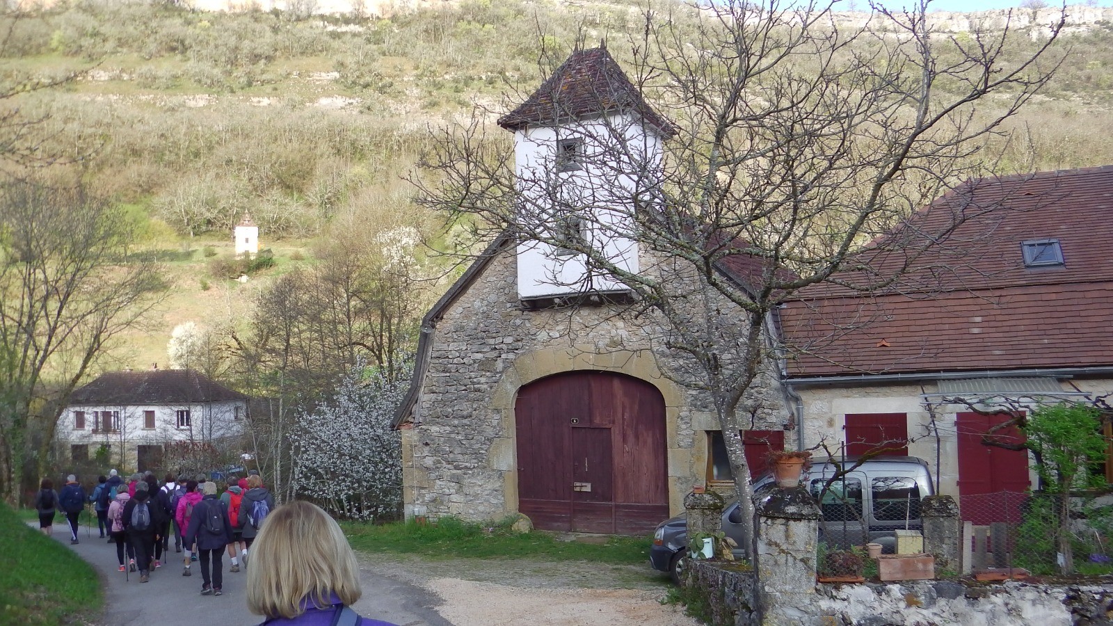 Météo idéale, paysage exceptionnel, la reculée d'Autoire avec sa cascade forme un décor magnifique.La montée de la reculée de ST Médard de Presque vers le château de Presque se fait au milieu des pruniers en fleurs;