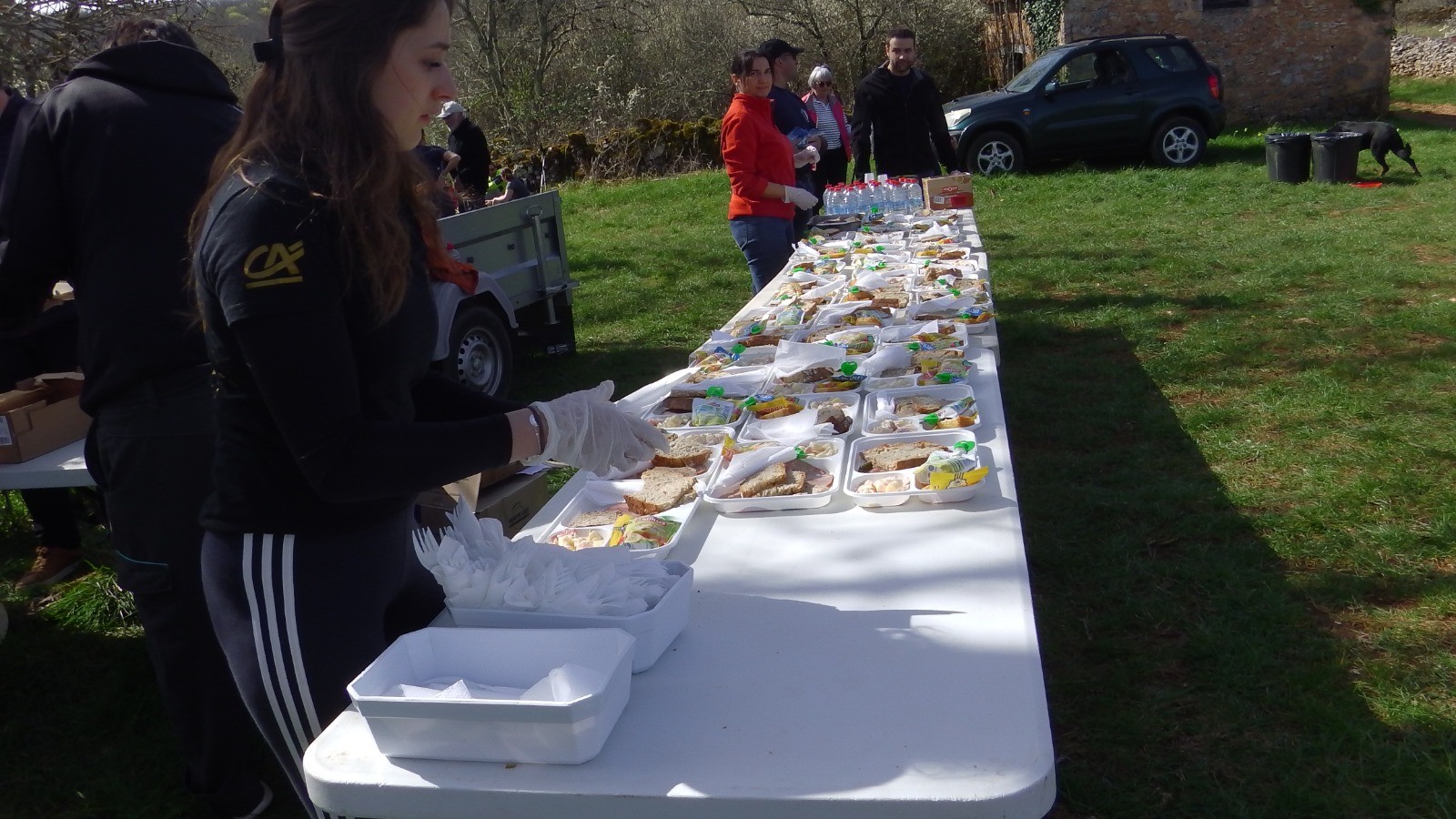 A mi parcours, le repas servi en plein air en bordure de la falaise qui domine Autoire a étté bien accueilli par tout le monde.