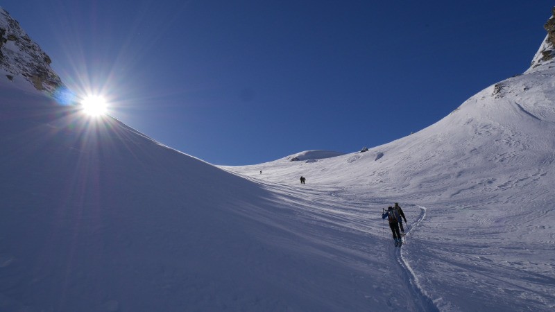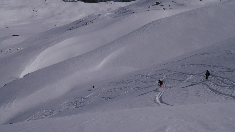 Du beau temps, une bonne poudreuse. Deuxième ballade de notre séjour prometteuse.