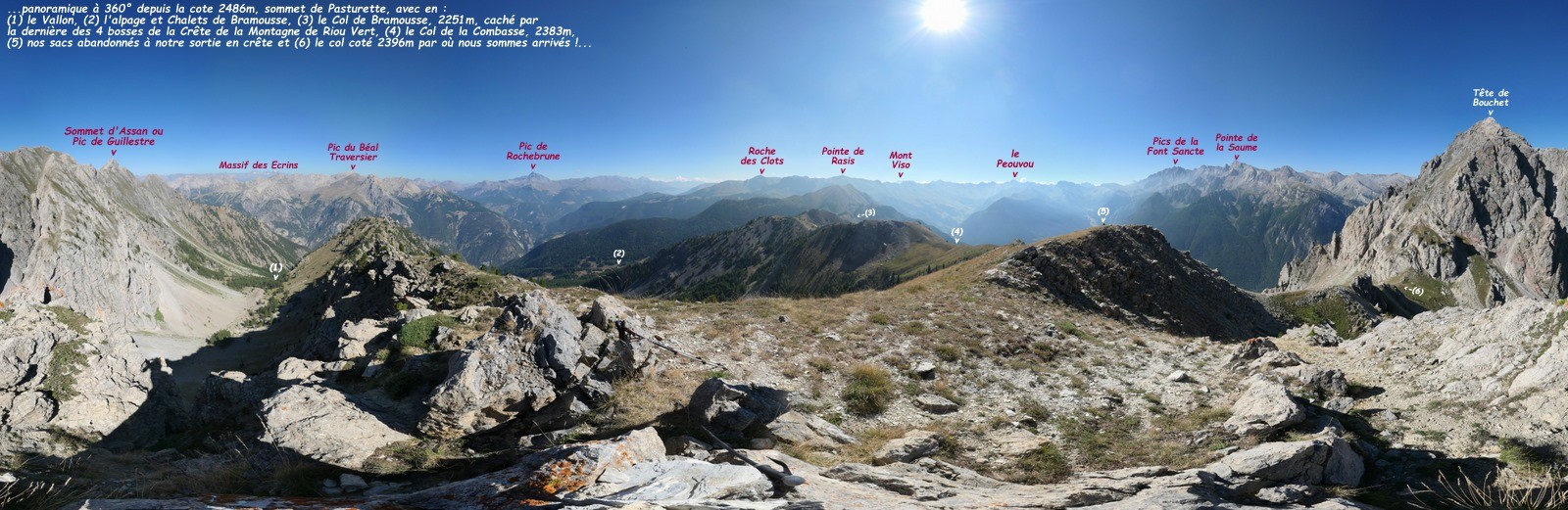 Crête des Chambrettes, offre à ses rares visiteurs un très beau panorama sur la Combe du Queyras et la quasi-totalité du Nord-Ouest du Queyras au Nord, Ceillac et tous ses alentours jusqu'à la Haute-Ubaye au Sud. La dernière fois que nous sommes passés par la crête de Pasturette en