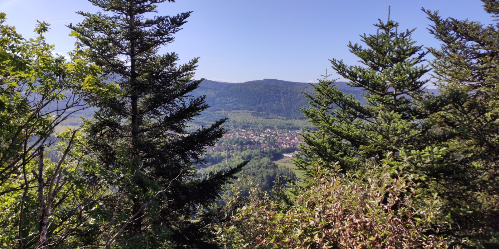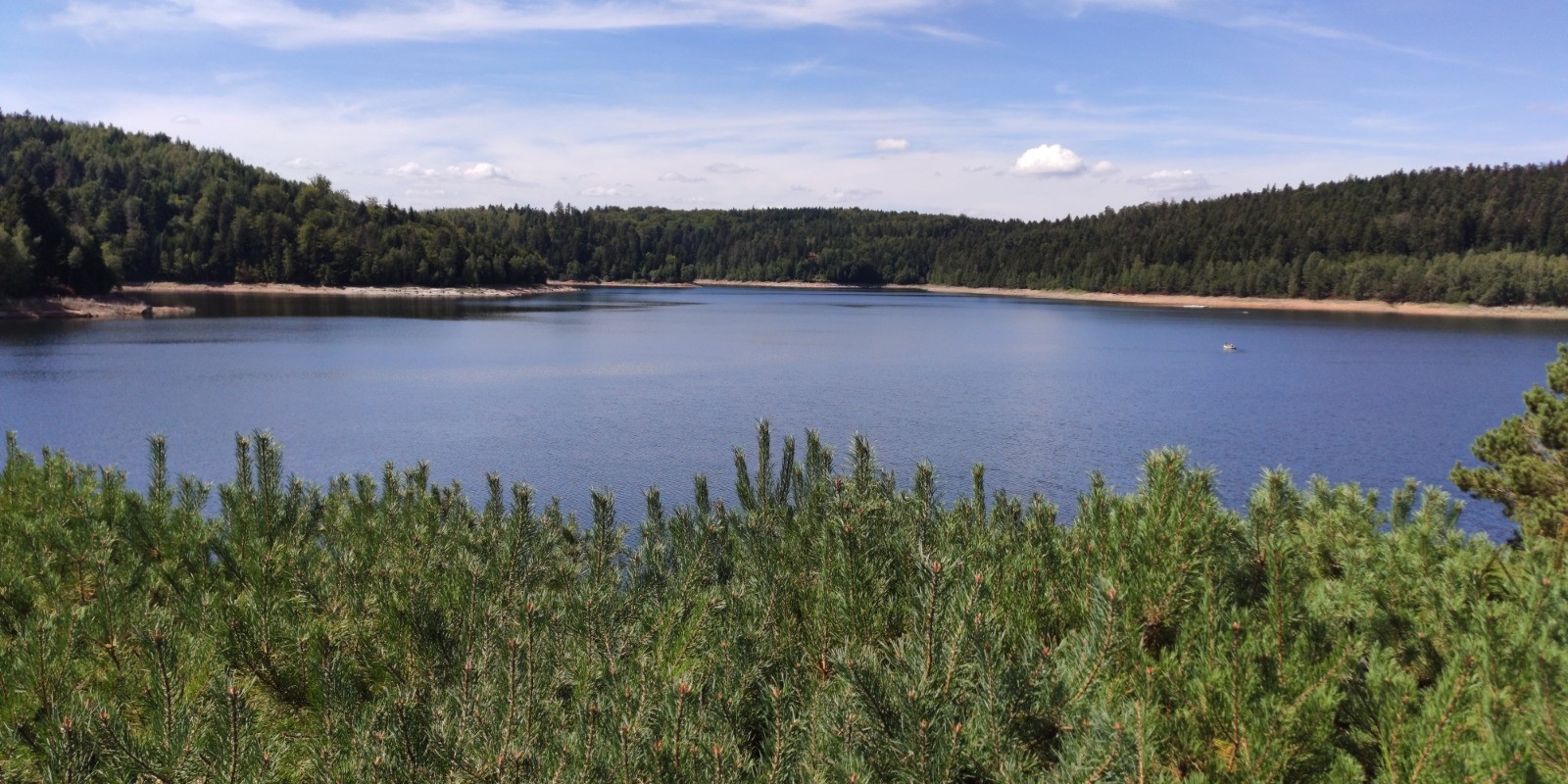 Celles-sur-Plaine (place de la Gare) - Roche de la Soye - Roches de la Pierre à Cheval - Grotte des Poilus - [GR533] - Roches de la Xaveure - berges du Lac de Pierre-Percée - Barrage de Vieux Pré - GRP de la Déodatie - berges du Lac de la Plaine - Celles-sur-Plaine