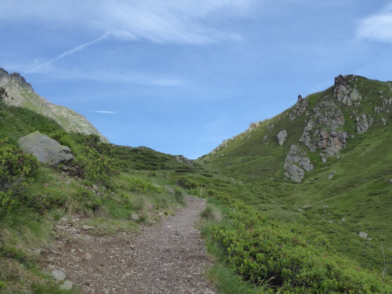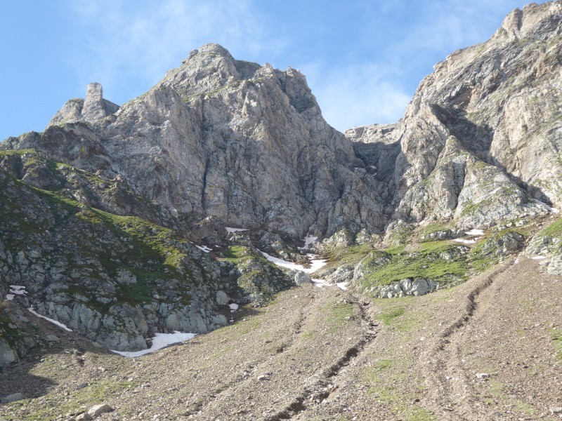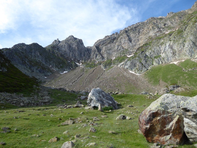 Il a dû y avoir un petit lac aujourd'hui à sec .Ce petit cirque est un lieu de rassemblement pour les troupeaux en estives. La montée depuis le col du Labasset éponyme du Cap bien sûr est assez sévère.