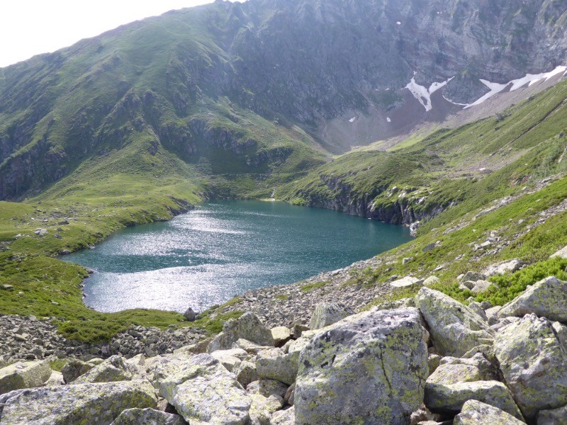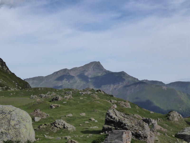 Une petite visite à ce petit cirque de Gramoun qui se loge au SO du col du Labasset , vue splendide sur le Montaigu.