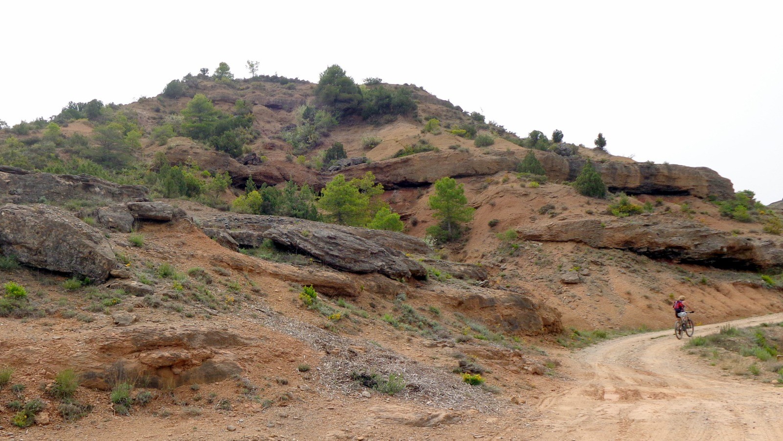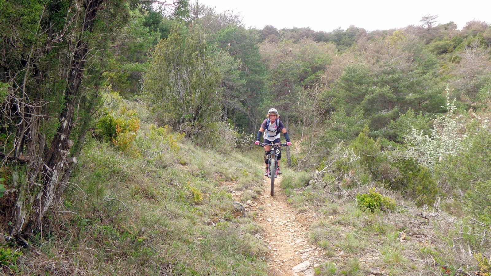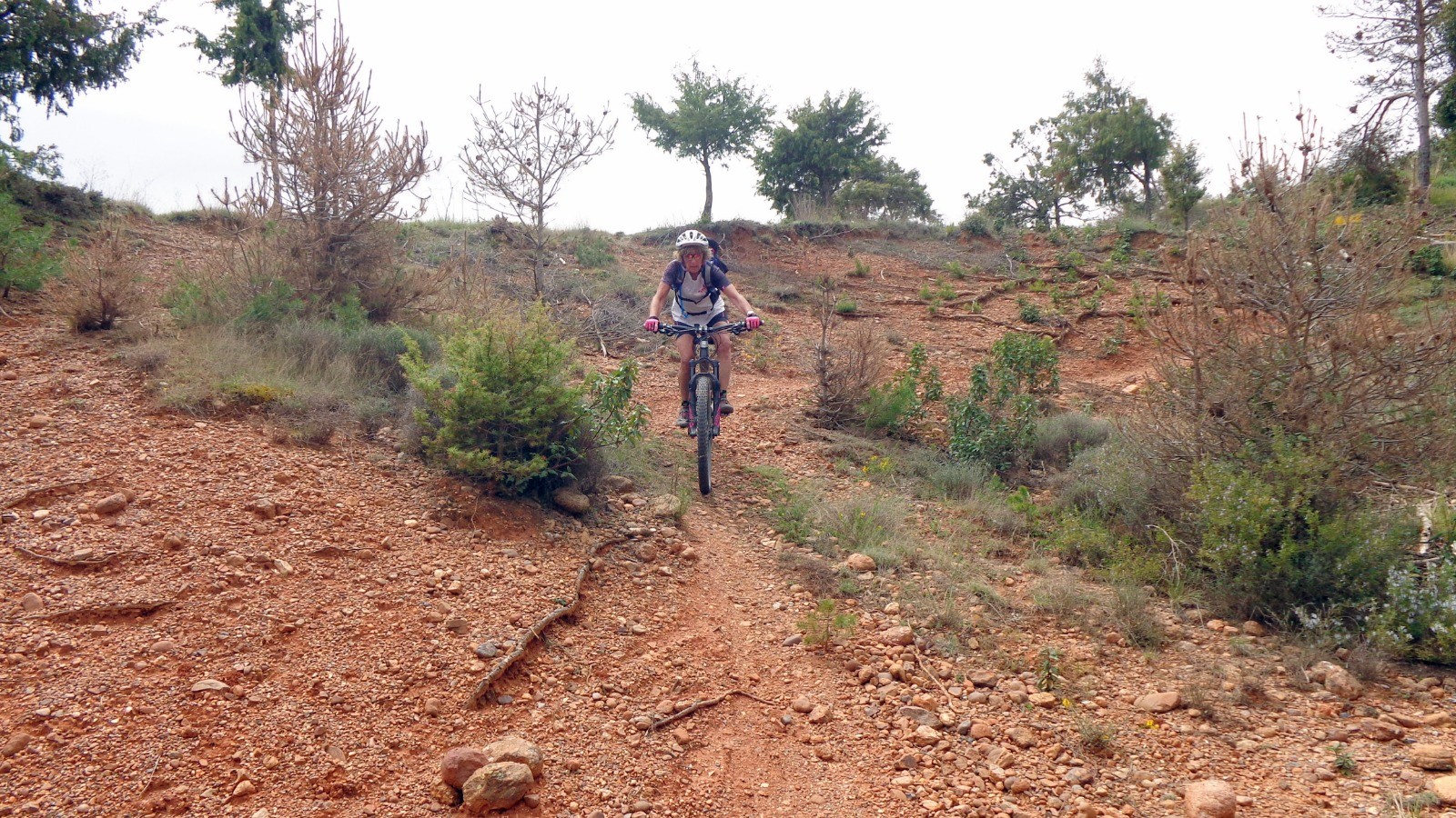 Direction l'Ermita de la Virgen del Monte par une longue piste, la première partie du sentier (Monjes Y Caballeros) n'est pas facile, la descente se fait dré dans l'pentu, côté freinage c'est limite dérapage, à l'Ermita de San Juan Bautista, la suite devient plus ludique jusqu'à la route.