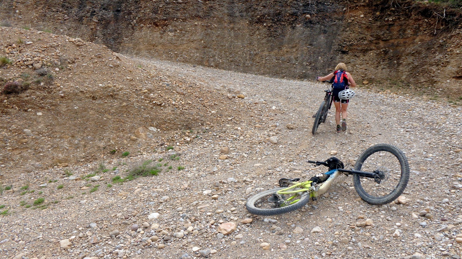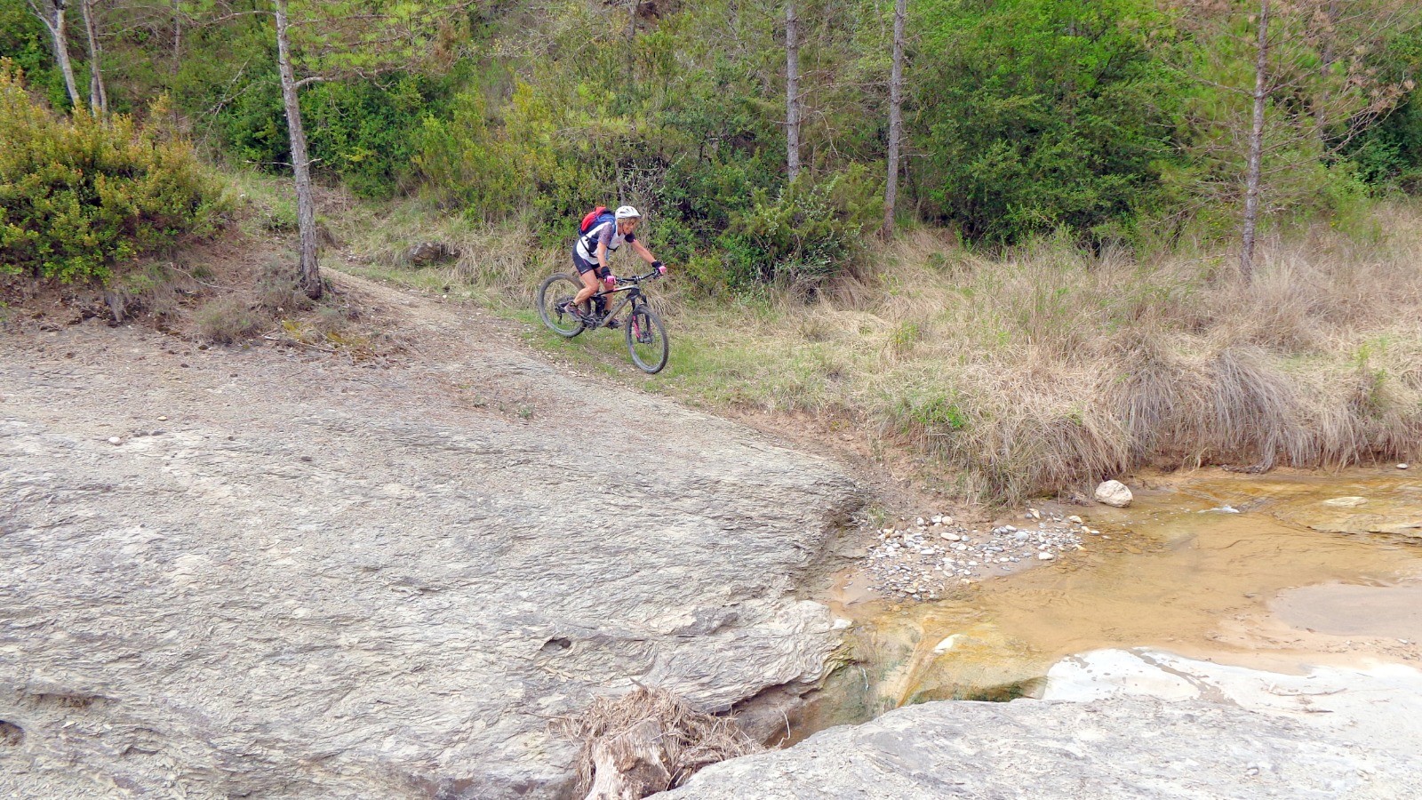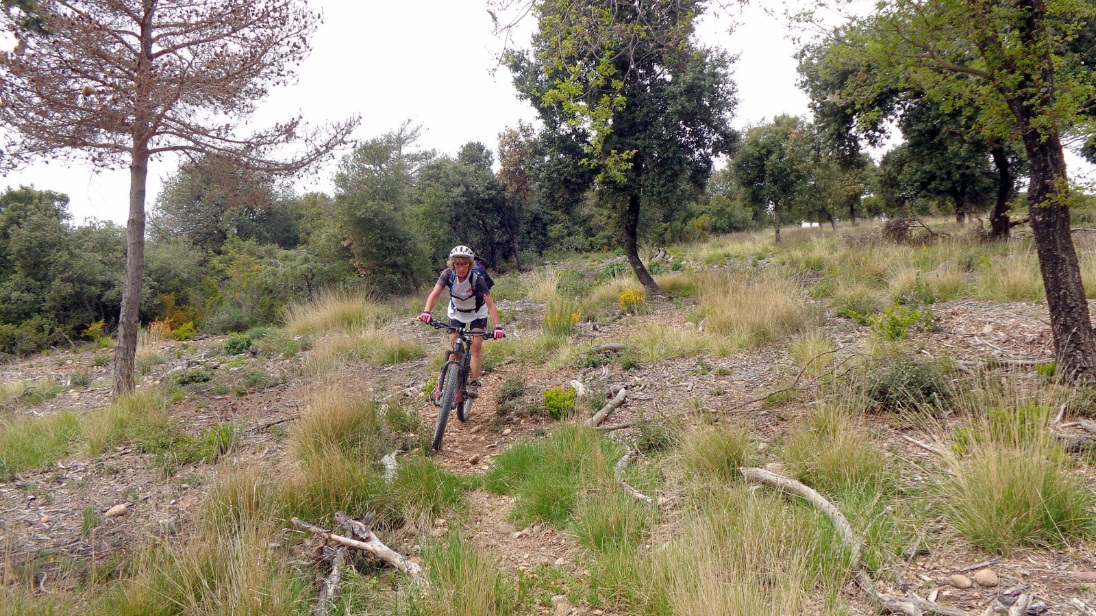 Direction l'Ermita de la Virgen del Monte par une longue piste, la première partie du sentier (Monjes Y Caballeros) n'est pas facile, la descente se fait dré dans l'pentu, côté freinage c'est limite dérapage, à l'Ermita de San Juan Bautista, la suite devient plus ludique jusqu'à la route.
