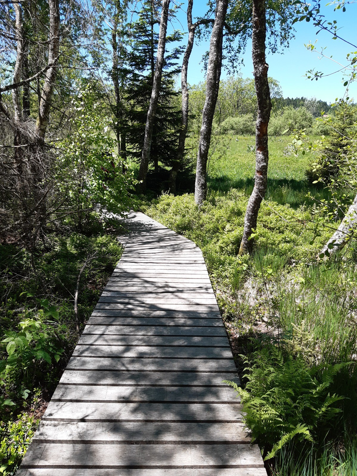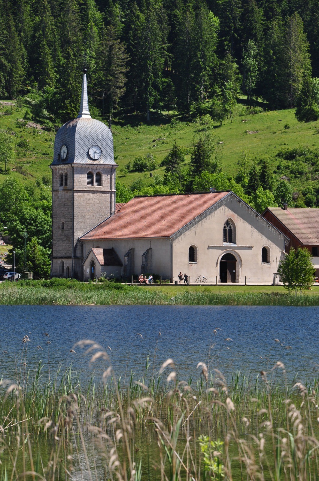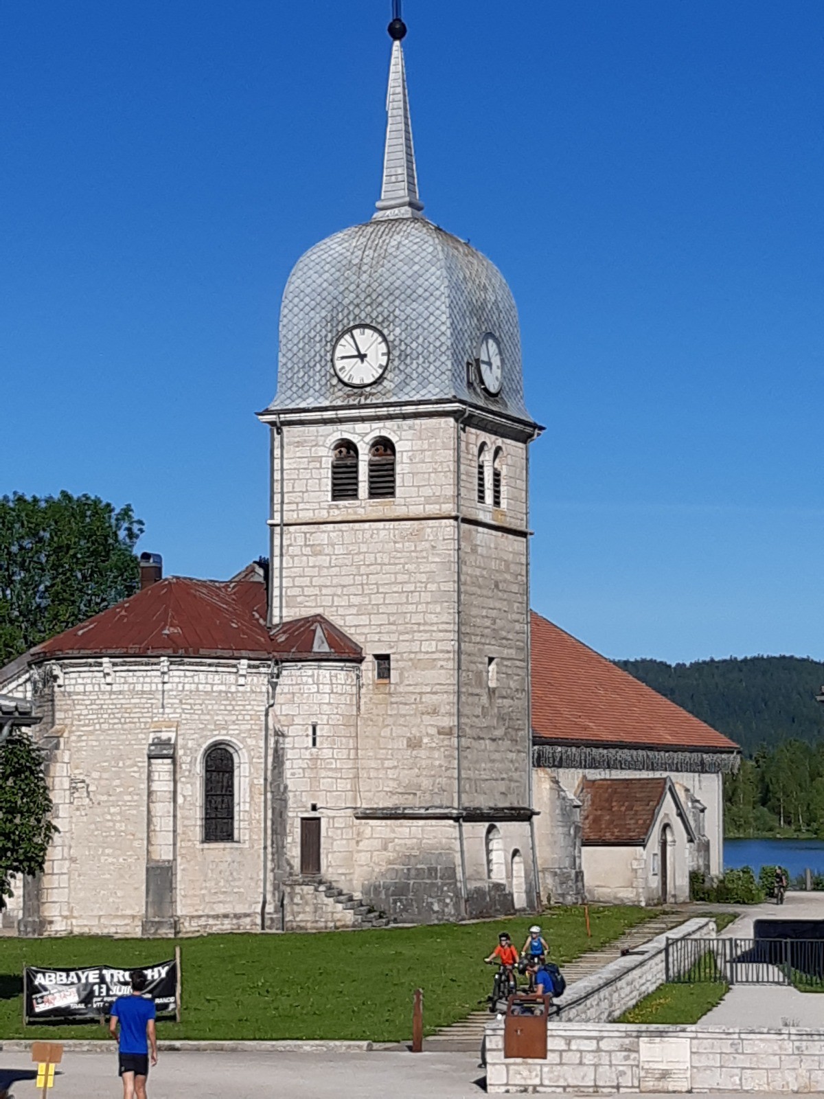 Partir du parking de l'abbaye en Grandvaux. Suivre la D437 en direction du Sud Ouest. On ne peut plus longer le lac par l'ancienne route car un hôtel a été construit et la station de pompage fait des travaux qui empiètent complètement sur le GR. Au bout d'1 km, grâce au trail organisé ce jour là, nous avons pu rejoindre l'ancienne route (les organisateurs avaient tracé quelques marches et débroussaillé : je ne garantis pas que cela perdure). Suivre le marquage du GR et gagner le belvédère du Moulin. Traverser la petite route et continuer de suivre les marques du GR pendant 1 km 900. Traverser la D 437 et descendre en suivant les marques rouges et blanches pendant 600 m. Laisser partir à gauche le GR et continuer tout droit (marques jaunes) jusqu'à la D28. Traverser la route : on retrouve les marques du GR. longer les Douillons jusqu'à Chaux des Prés. Gagner la croix de Lorraine et prendre à gauche puis monter vers le belvédère du Duchet (marques jaunes). Descendre vers Prénovel en prenant à droite au sortir du bois. Se diriger vers la tourbière qu'on traverse sur un petit chemin de planche bien aménagé (panneaux explicatifs de la faune, de la flore et de l'exploitation de la tourbe). En sortant du sentier de découverte, prendre à droite en direction de la D28 qu'on emprunte vers la droite sur quelques mètres. On remonte alors, sur la gauche, dans le bois en suivant les marques du GR et les marques jaunes pendant 2 km 600. On retrouve alors le GR 559 qu'on emprunte à droite en direction des Farrods. Prendre à gauche la petite route bitumée qui longe la D149 pendant 1 km 800. On doit néanmoins marcher sur cette départementale pendant 400 m. Emprunter alors le petit sentier sur la droite qui ramène vers le point de départ en logeant le lac vers la fin du parcours.