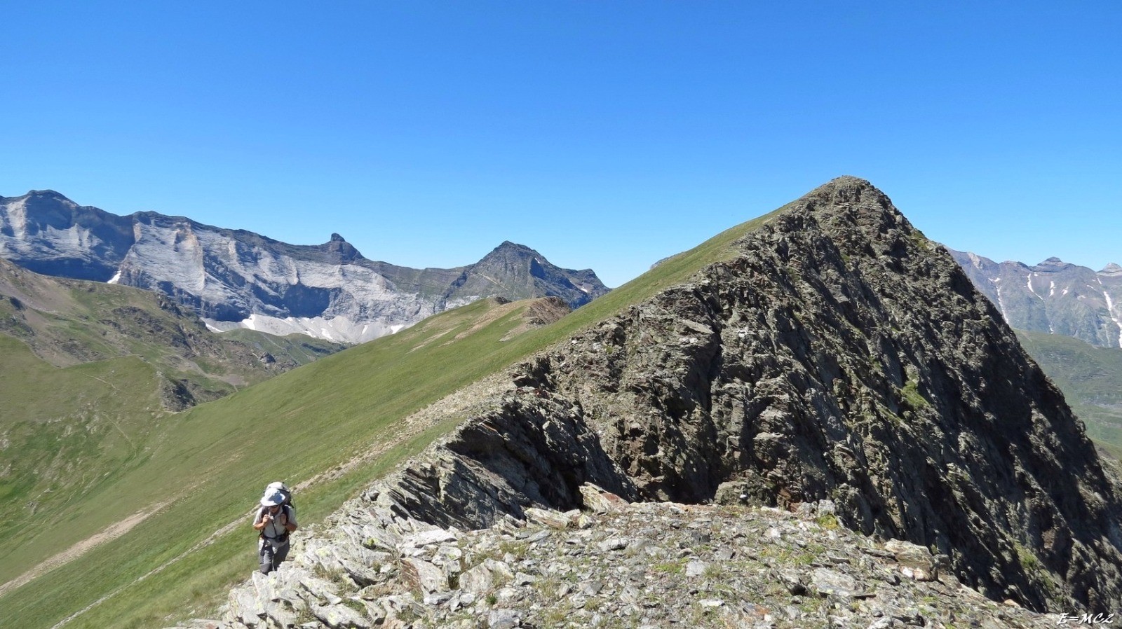 Du Port de Bielsa on attaque la crête de Bataillence par un ressaut raide. Elle reste rocheuse jusqu'aux abords du Pic de Bataillence. Continuer jusqu'au Port de Héchampy. Initialement le bivouac était prévu au Lac de Héchampy, mais nous sommes descendus sur le versant espagnol à l'Ibon de Salcorz, visible depuis le col.