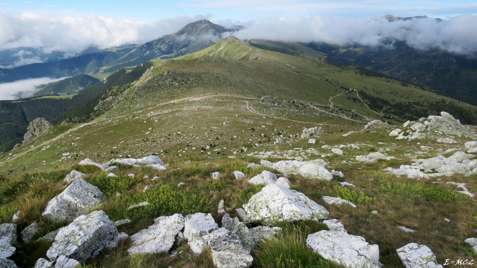 Du Refuge de Pla Guillem, revenir au Col de Roques Blanches par le cheminement emprunté la veille. On peut faire la traverser du Puig de la Collada Verda en prenant la crête à partir de la Collade del Vent et en descendant directement depuis le sommet au Col de Roques Blanches.