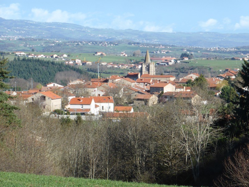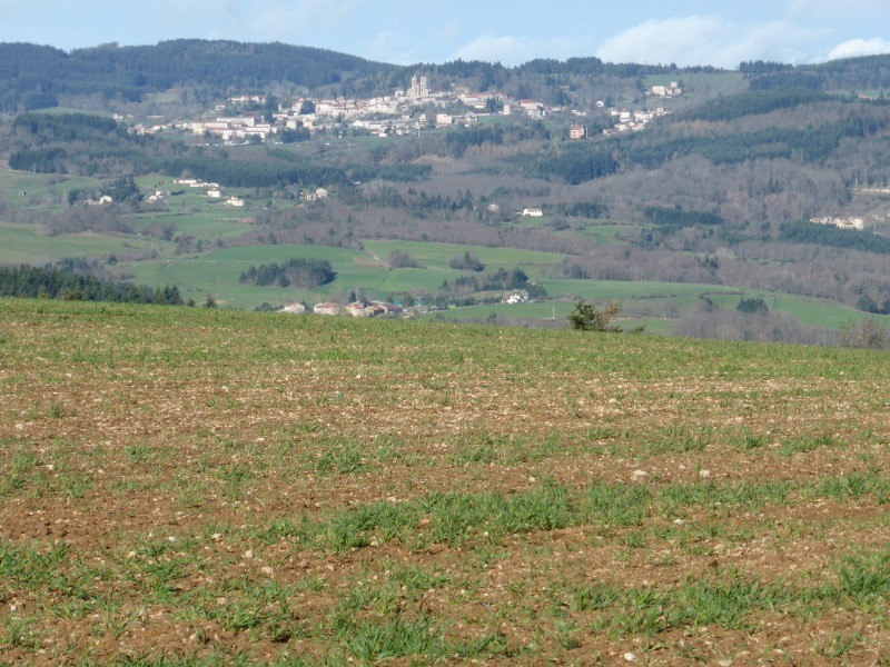Paysage très dégagé avec vue sur le Forez et Saint-Bonnet le Château.