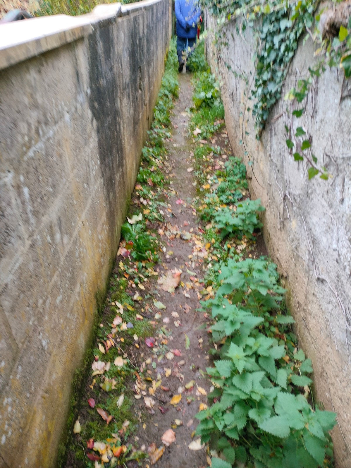 Halanzy, point de rencontre convivial au cœur du village. Vous glissez ensuite derrière les maisons de la rue de la Barrière, sur des servitudes discrètes bordées de jardins et de murets, comme un passage secret entre les vies villageoises.