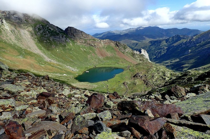 Itinéraire classique pour ce pic qui surplombe la station de ski de Gourette. Départ de Gourette, remontée du vallon du Valentin, passage par le lac d'Anglas et ses anciennes mines de fer, et montée jusqu'à un replat vers 2400m. La dernière partie se fait à travers un pierrier qui permet d'accéder à la crête et au pic (2614m). Retour par le même itinéraire.