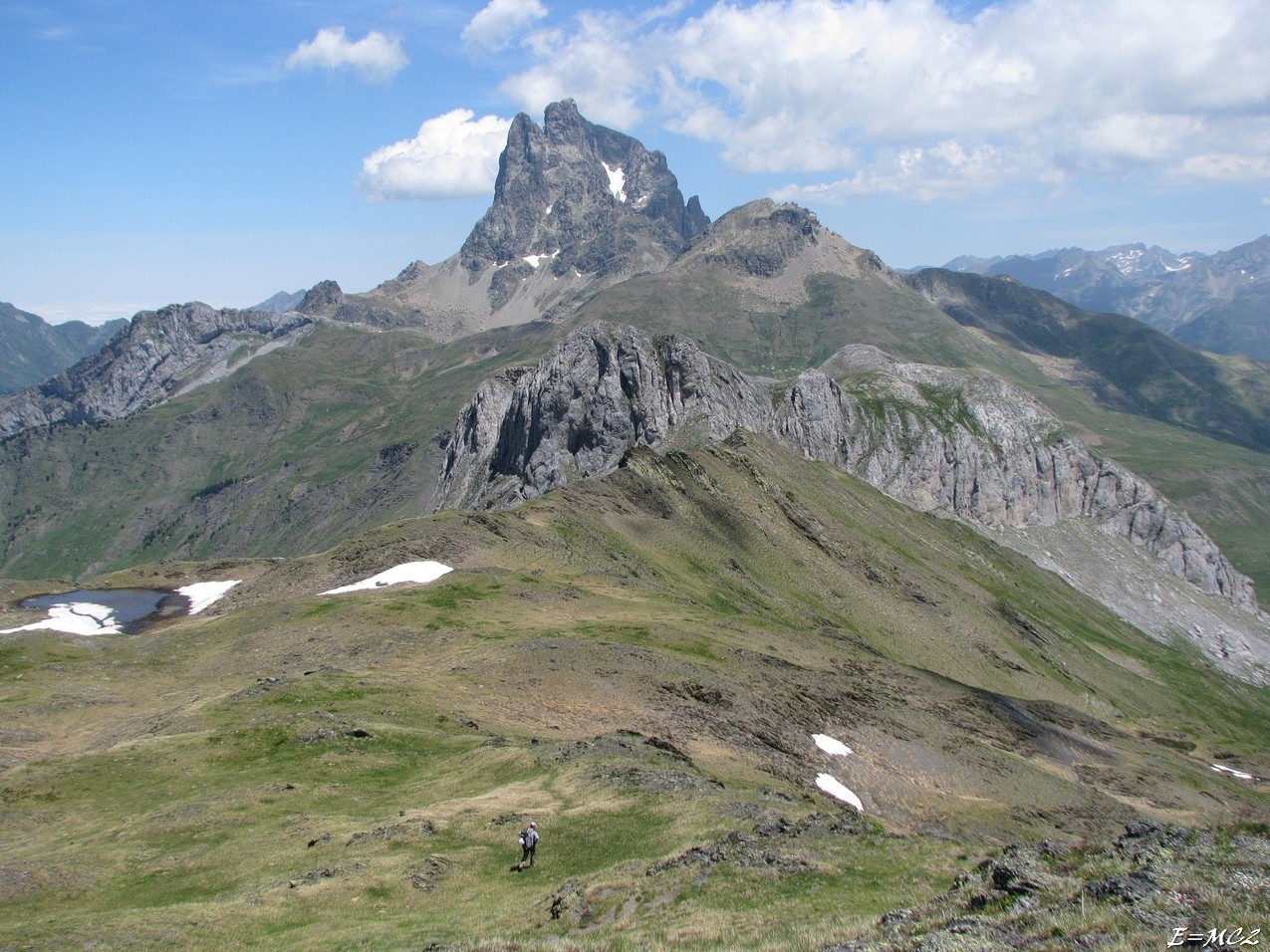 Du Pic d’Anéou, aussi appelé Pic de Mauhourat, continuer sur la crête frontière jusqu’au Pic de Canaourouye. Sans grande difficulté, on peut rester sur le fil de la crête, on peut aussi rester en léger contrebas versant français.