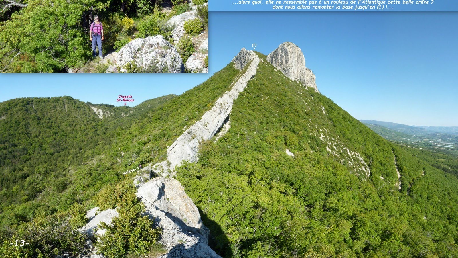 Passé Sisteron en direction du Nord-Ouest, l'enfilade des pointes de la crête de la Montagne