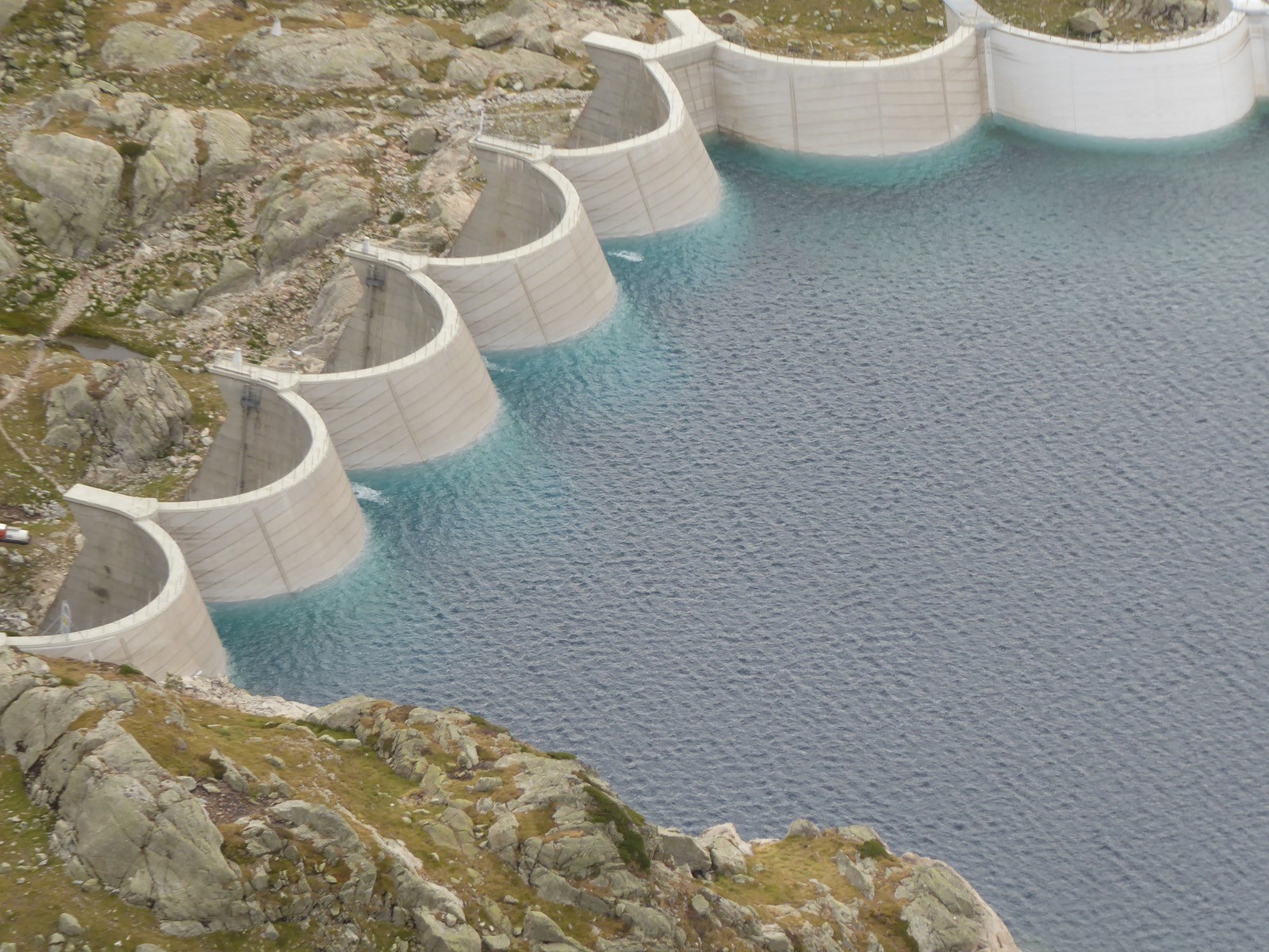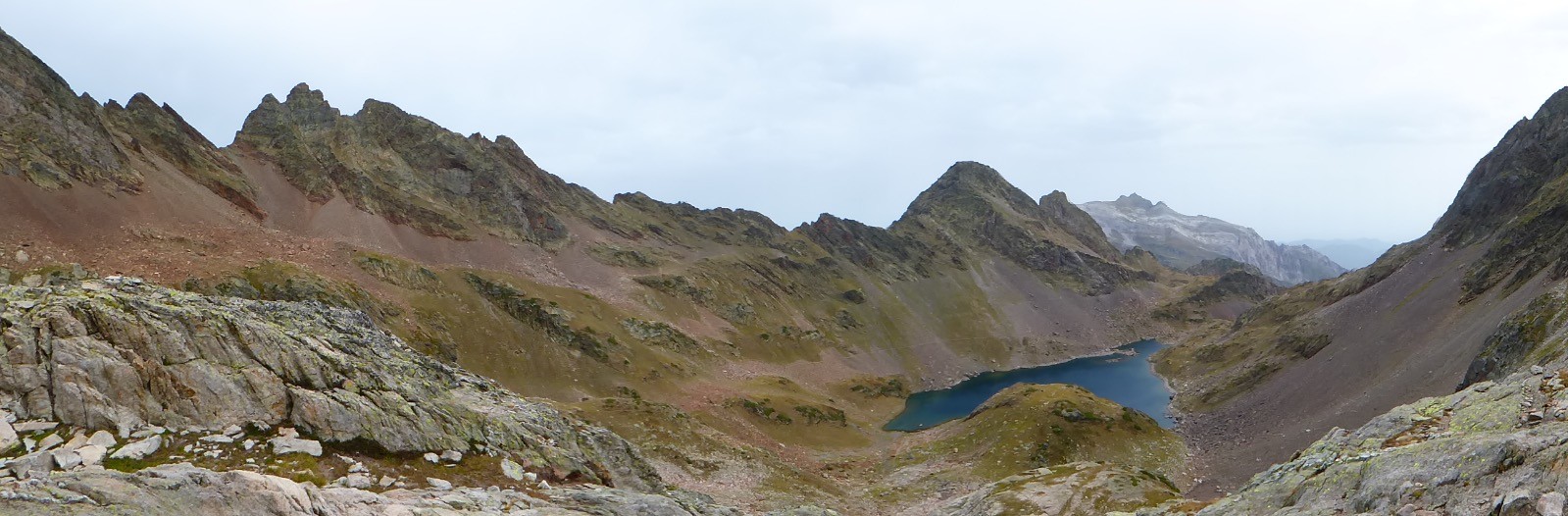Une très belle boucle, qui nécessite deux voitures dans l'idéal.Trois lacs donc au programme aujourd'hui. Le barrage du Tech, situé à 1207m, a une superficie de 9,5ha et il est profond de 20m.Construit entre 1949 et 1951 par EDF, il peut contenir environ 1,35millions de m3. C'est près de lui que nous débutons notre boucle vers le lac de Pouey Laün situé à 2346m . Profond de 26m, celui-ci a une superficie de 5,8 ha. Autour de lui le Pic Arrouy 2708m, le Pic des Tourettes 2771 m , le Pic d'Estibère 2738 m . La montée au col de l'Hospitalet à 2548 m permet une vue magnifique sur le lac. Depuis le col on peut aussi profiter d'une très belle vue sur Migouélou.Ce lac a une superficie de 48ha environ, sa profondeur est de 95m .Le barrage est constitué de neuf voûtes en béton de 31 m de hauteur et 274 m de longueur, il fut construit construit de 1956 à 1958 et mis en service en 1959 pour alimenter les sept centrales du Val d'Azun.Il est alimenté par gravité des eaux du lac de Pouey Laün et par pompage des eaux du lac de Lassièdouat (80 m plus bas), des eaux de la haute vallée d'Arrens captées 750 m plus bas au niveau du lac de Suyen et celles de la haute vallée d'Estaing amenées par galerie à la côte 1500 m. Tout près de lui, le refuge de Migouélou qui fut construit en 1972, situé à 2278m comprend 40 places . Il est gardé gardé de juin à septembre et il appartient au Parc National des Pyrénées. On y est très bien accueilli.