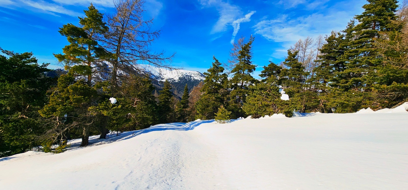 Phase retour par même itinéraire jusqu'au Pic de Rent avec variante descente en demi boucle à l'approche du replat précédant la zone boisée du début de circuit. S'orienter au nord-ouest sur zone dégagée à proximité du point côté 1775 et récupération à la courbe de niveau 1730 d'un chemin estival non balisé qui ramène directement au point de départ. Il est à noter qu'en raison de chutes de neige abondantes sur zone vierge, ce chemin se devinait très faiblement par tassement avant de prendre une apparence plus marquée (photo N° 24). Retour sans encombre mais emploi GPS conseillé pour s'orienter et aborder ce chemin dont le tracé s'avère parfaitement fiable et sans dévers.