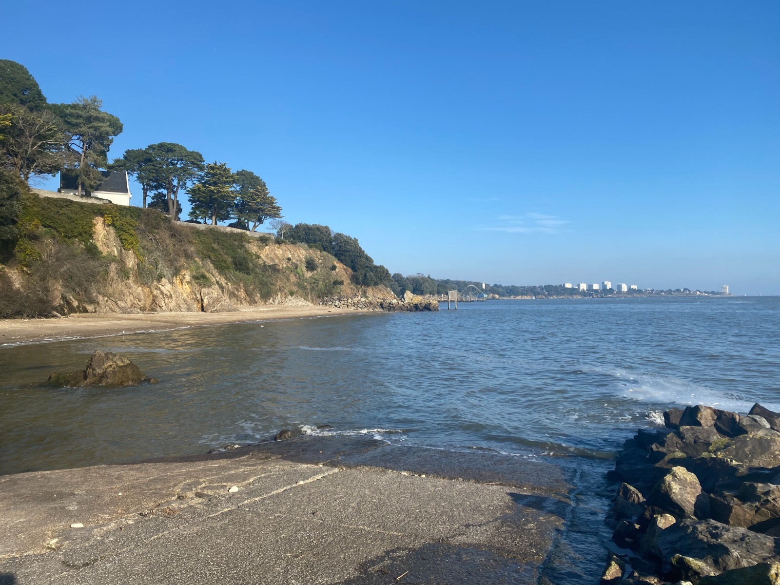 Je me gare tout près de la plage de Trébezy et plus précisément chemin de Trébezy. à Saint Nazaire Plage de Trébezy : Une petite crique à croquer qui offre un joli point de vue sur les pêcheries !
