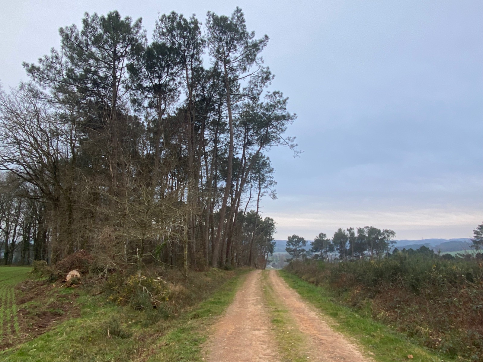 Entre les kilomètres 8 et 11 , a plusieurs reprises vous traversez des landes , forêts de pins ... que du bonheur ( photo no 14 )