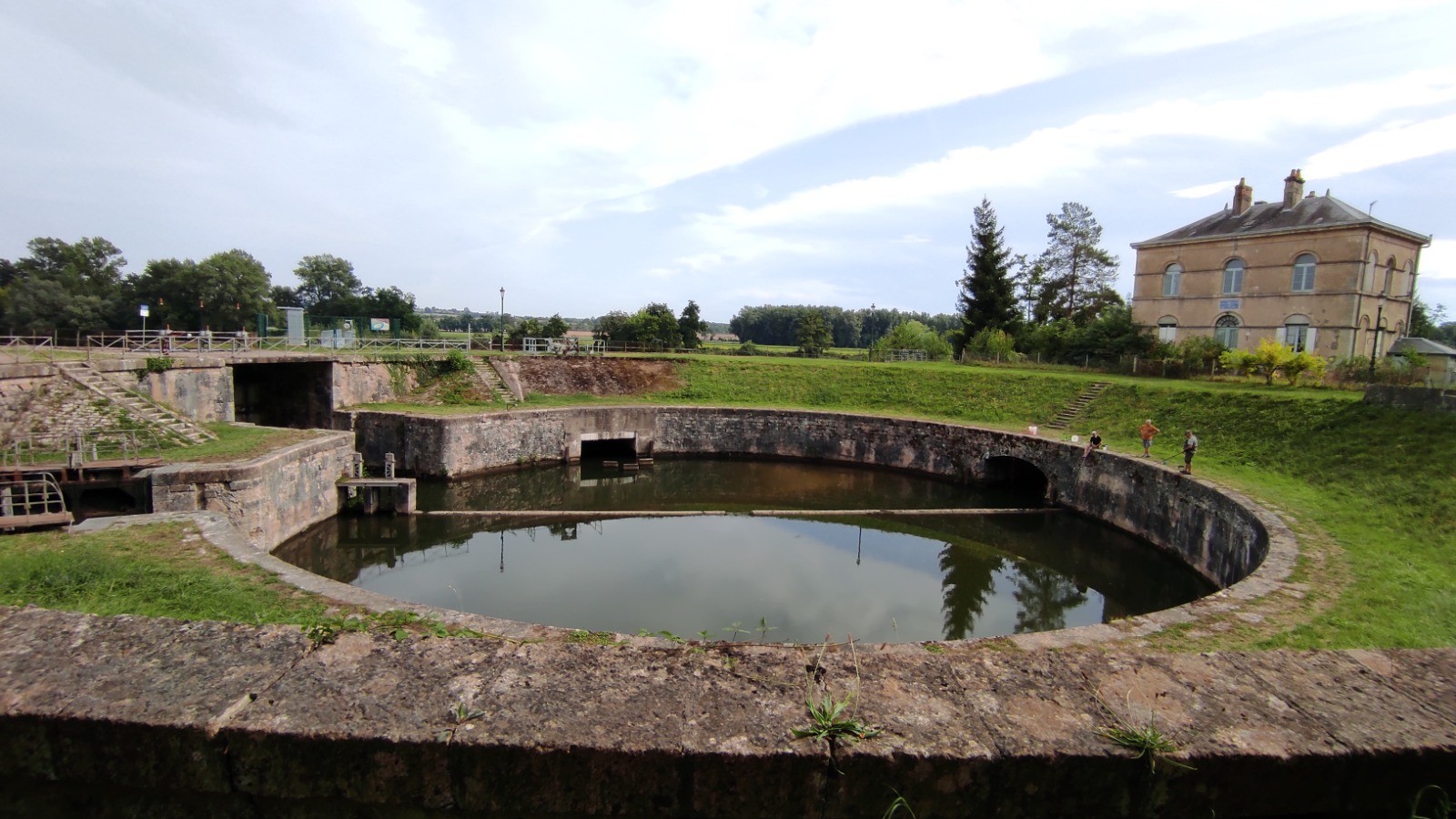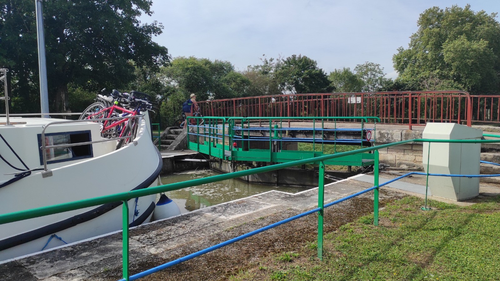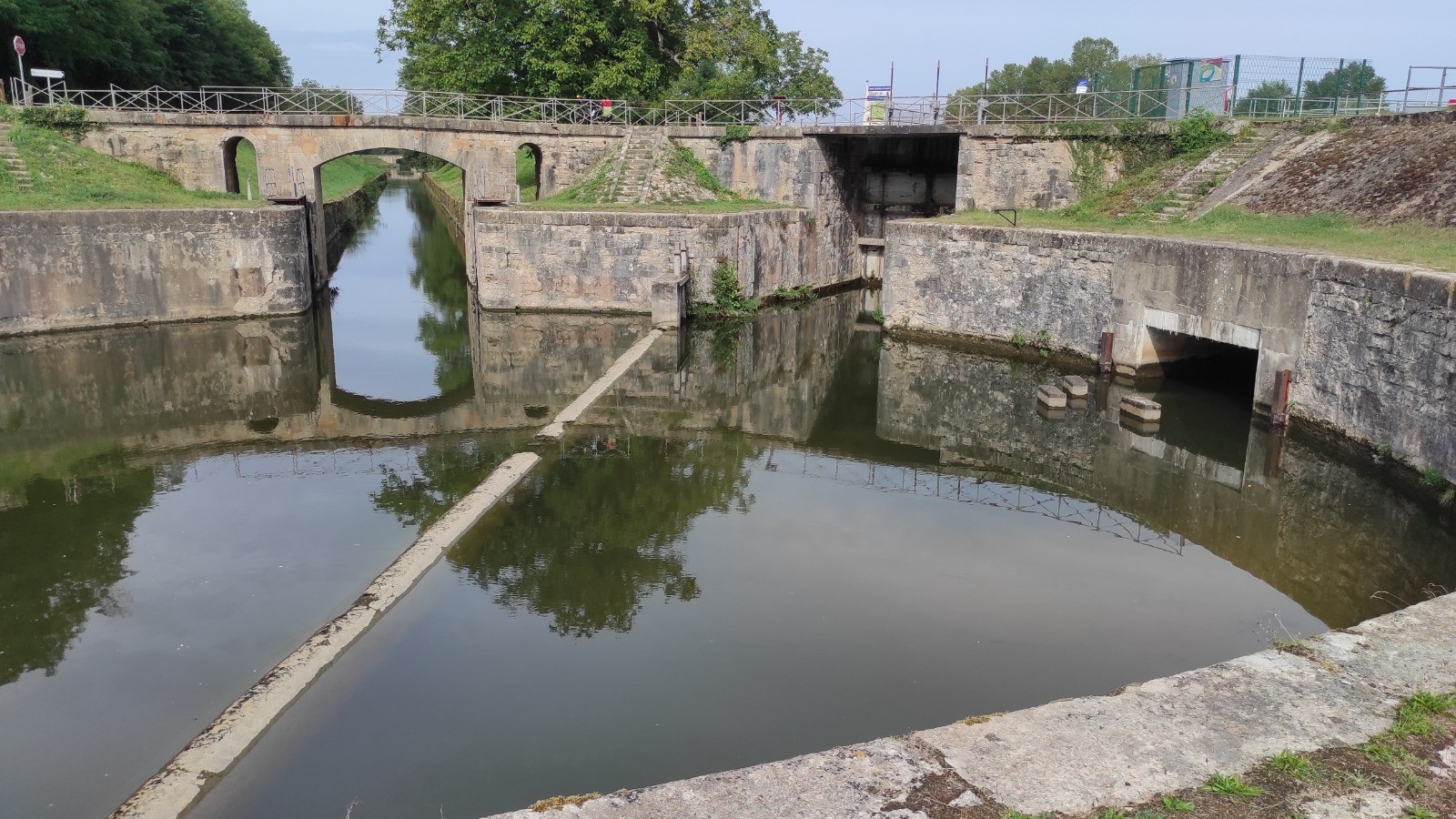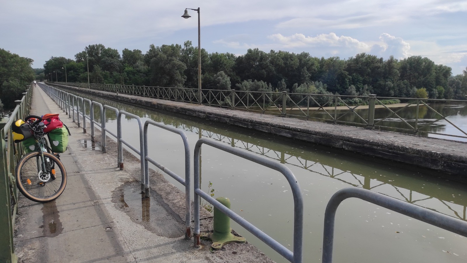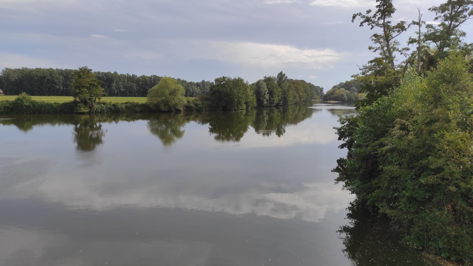 Ça commence mal et cela ne va pas s'arranger. Il pleut. On est trois à se réfugier dans l'abri cyclo. Un flamand avec son fils, qui part pour le Nivernais et un piéton qui à fait la Loire depuis sa source. La pluie s'arrête et le temps sera finalement beau (enfin...). Je reviens sur mes pas pour aller voir le canal du Nivernais à sa source sur la Loire. Malheureusement, je n'ai pas démarrer le GPS. À l'ot de Decize, on m'a donné une carte du canal du Berry.