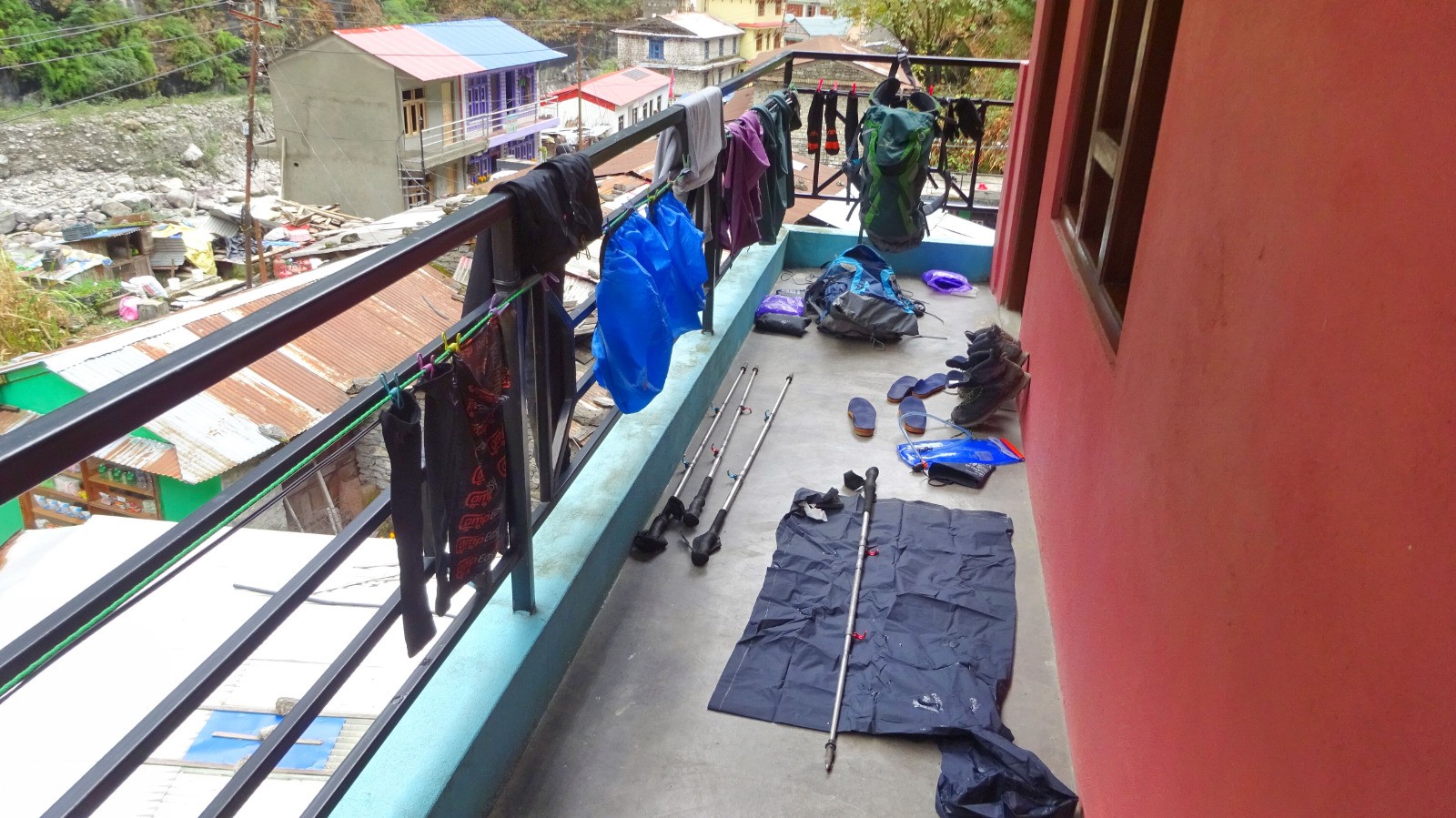 Nuit à Dharapani à l'Hôtel Gurkha's Inn & Restaurant, apéro 2930 rps, pas de courant et de Wifi car la micro centrale électrique a été endommagée par la mousson.
