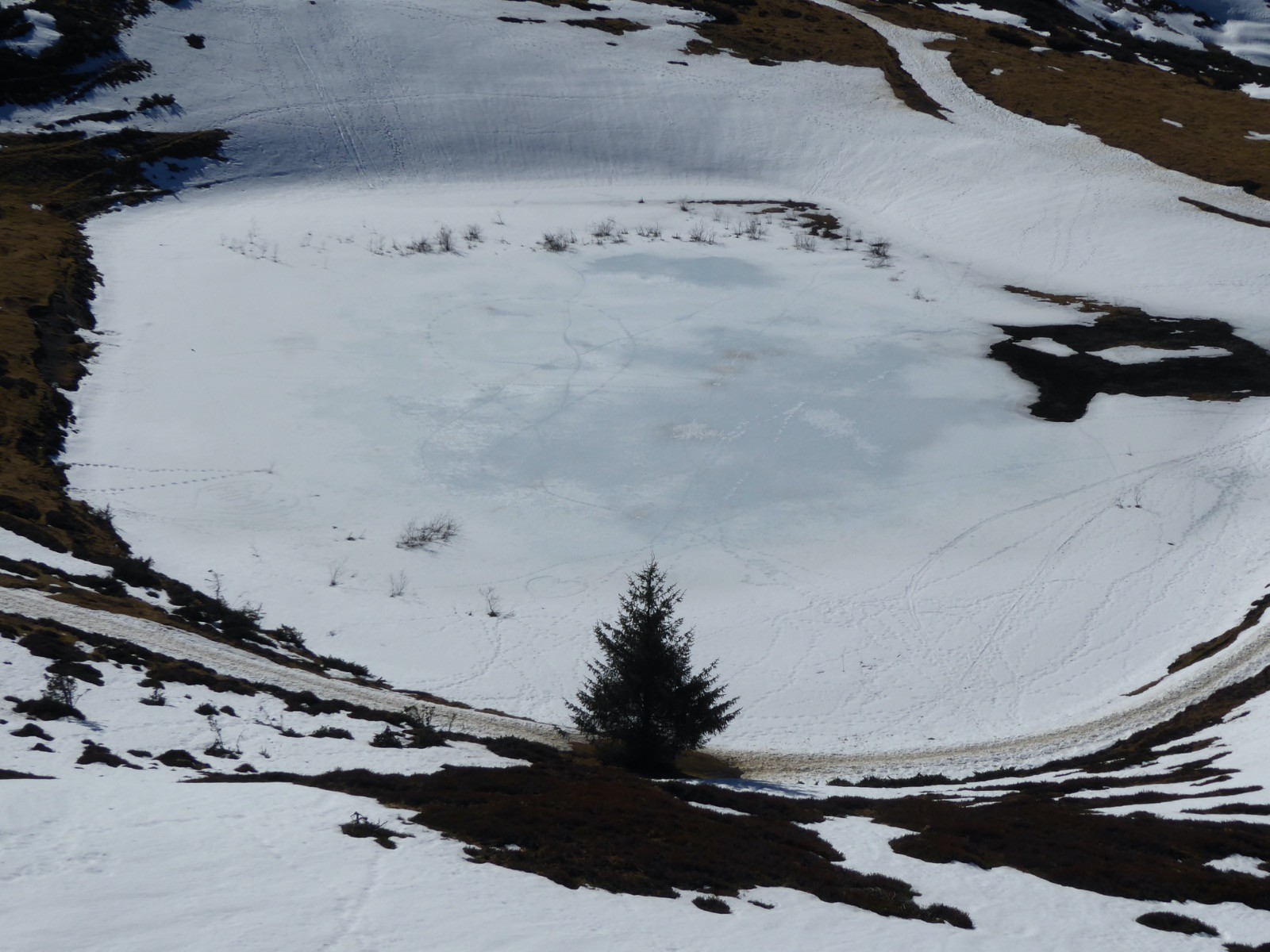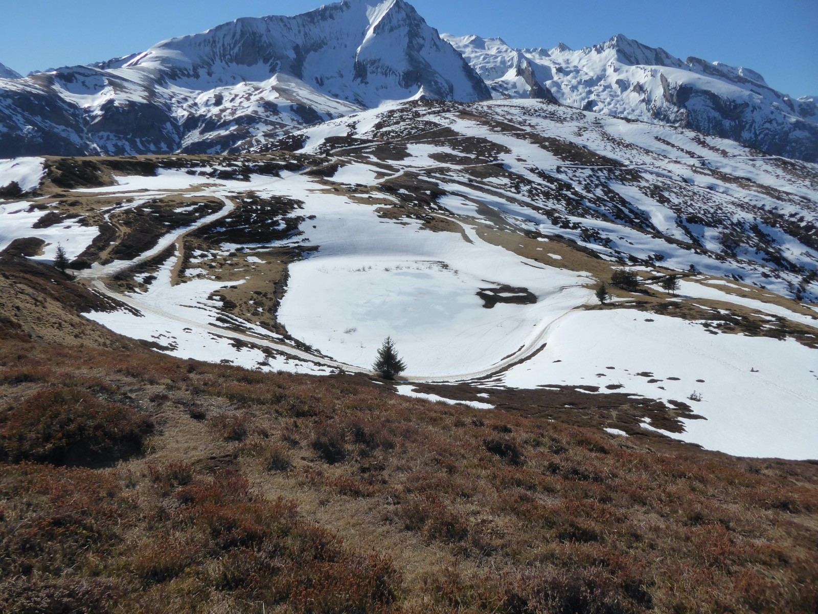 La montée au pied du Berbeillet est pleine de granges qui attestent d'une vie pastorale très intense. Le Lac de Soum était encore pris par la glace .