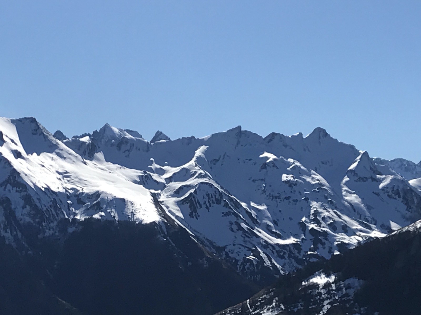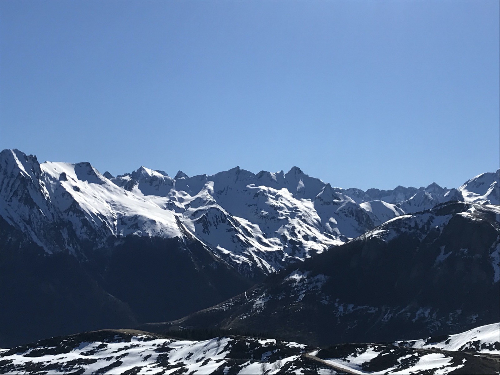 Une journée très ensoleillée, pour aller aux Crêtes de la Serre encore enneigées par endroits. Voilà une course E/O qui nous a permis de profiter d'un panorama magnifique: Pic du Midi de Bigorre, Montaigu, Pibeste, Bazès, Moulle de Jaut , Pic Durban, Mailh Massibé, Latte de Bazens, Pic de Ger, Gabizos, Cambalès, Balaïtous, Grande Fache,Grand Barbat etc etc .