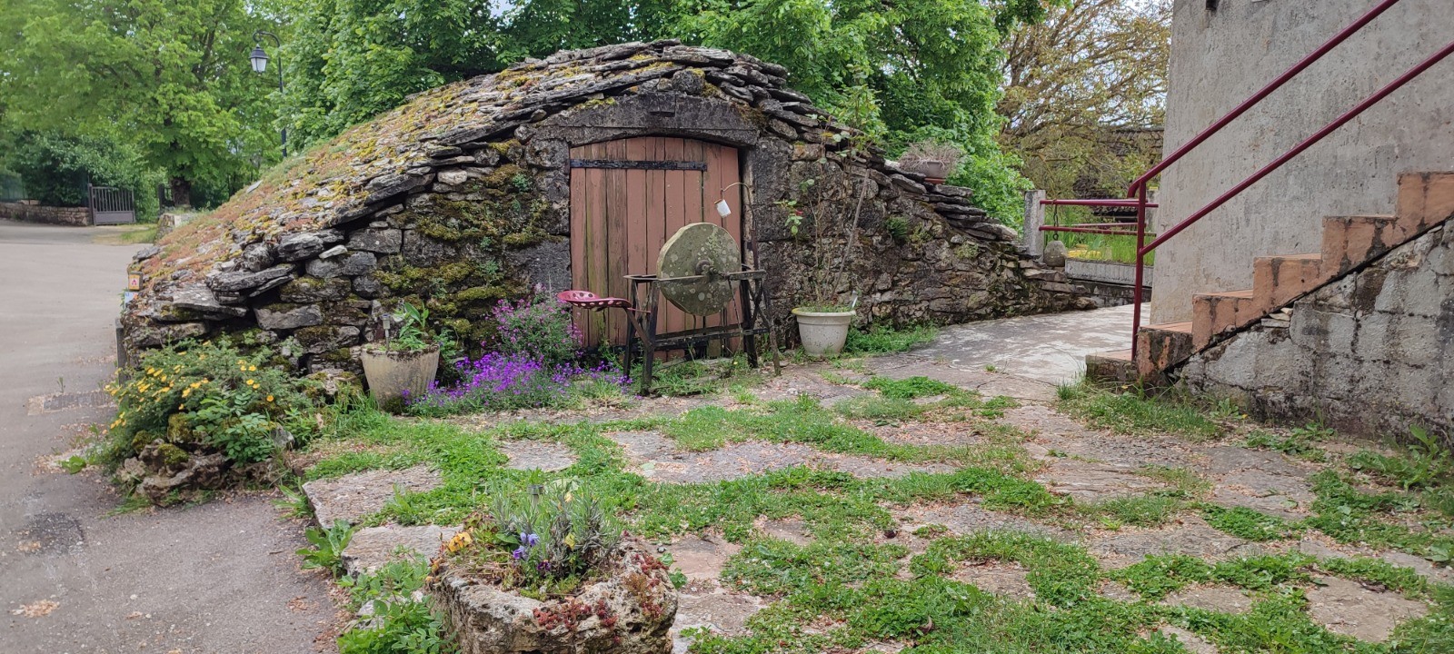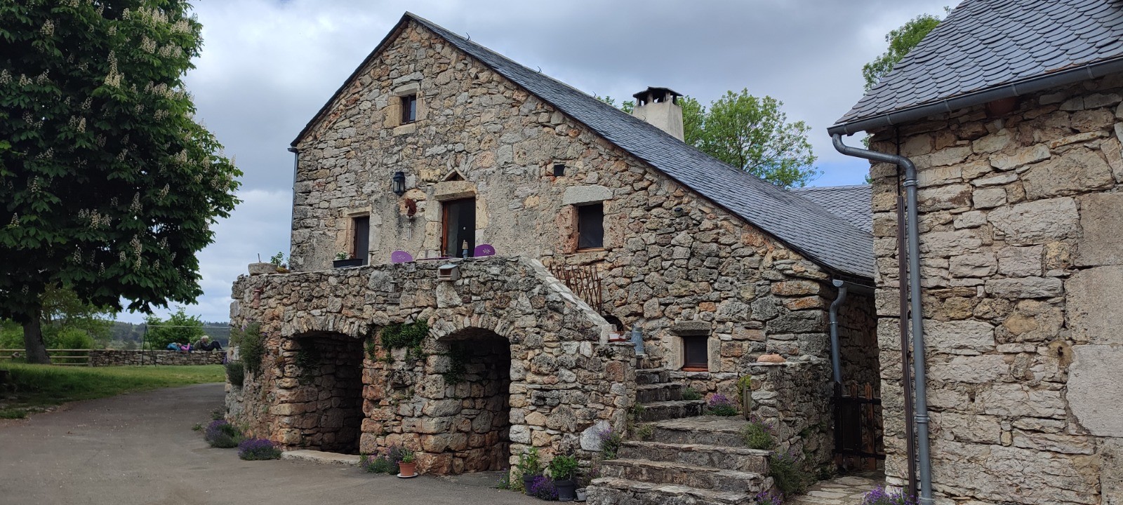 En route le petit aérodrome de Yves, un paysage de causse, très mignon hameau, le Mas de val où l'on mange.