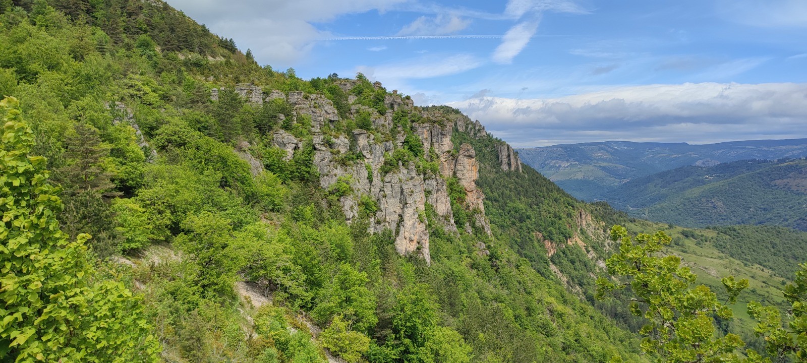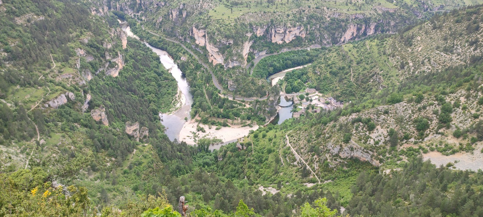 Magnifique panorama sur St Chely sur Tarn dans la descente.