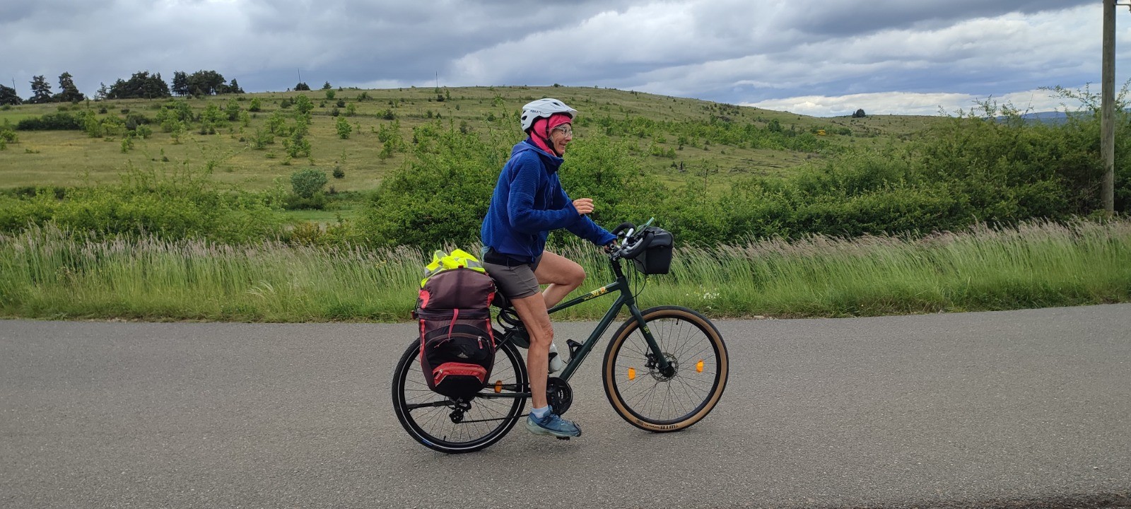Voilà nos plans changés. Yves par une message de Corinne nous incite à passer par le causse Méjean. Deux petits virages et hop on est en haut.