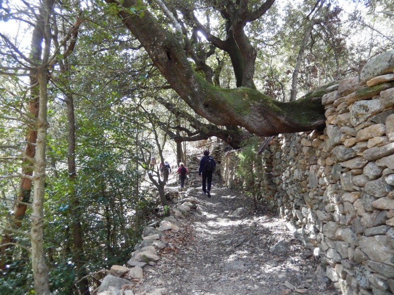 Sentiers de randonnée à travers d'anciennes châtaigneraies et des forêts de chênes et de hêtres et des cheminements en bordure de très beaux murets en pierre sèche du Caroux et en lauzes, plus particulièrement dans la seconde boucle entre Cours le Haut et Cours le Bas.