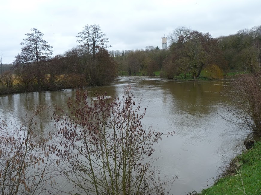Randonnée pédestre au départ du parking de la mairie d'Ifs. Balade rurale et urbaine . Passage sur la voie verte de la Suisse Normande et le long de l'Orne qui traverse Caen avant de se jeter dans la mer de La Manche à Ouistreham.