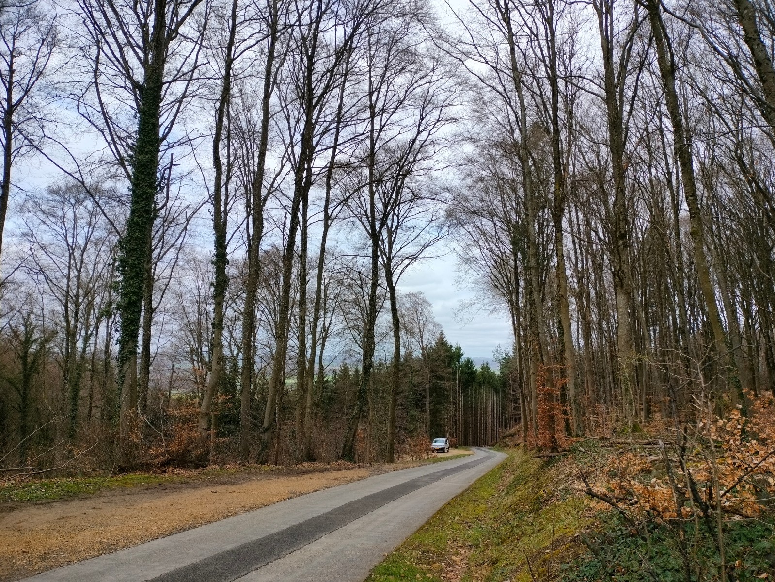 Kahlenberg, le "mont chauve ?". Sous les arbres encore sans feuilles, la lumière est douce et le calme seulement interrompu par les oiseaux. La montée est progressive et accessible.