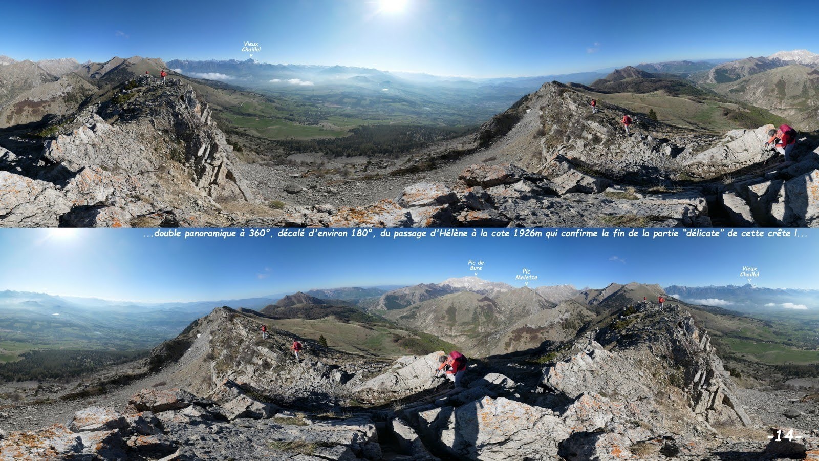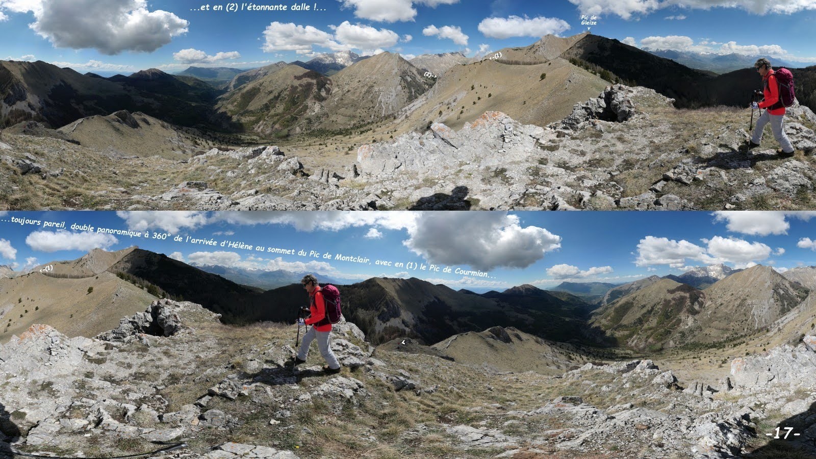 Puisque nous avons court-circuité environ les 3/4 de la crête Sud du Pic de Montclair qui, ô miracle ! est désormais bien répertorié sur Géoportail sur son imposant piton rocheux, coté 1847m, et plus au niveau du max (d'un peu plus que 1850m mais pas coté !) de la crête qui le relie au Pic de Courmian, coté 1855m, comme sur la Top 25 ancienne version; tout en sachant que nous aurions pu faire encore plus cool en montant directement jusqu'à ce point culminant et effectuer un simple aller-retour en crête pour ne pas rater le panorama depuis ce pic, au lieu de se compliquer la vie en jouant les dahus pour le seul plaisir d'en effectuer une plus élégante traversée ! oui, bon, élégante, ça dépend pour qui ? je déteste ce genre de traversée !