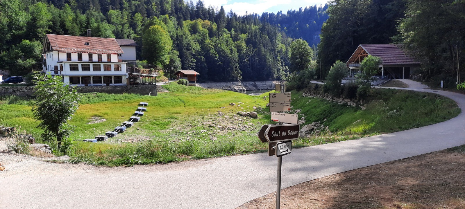 en chemin bassins du Doubs routes forestières saut du Doubs belvédère balise jaune et bleue et rouge et blanc bonne visite...