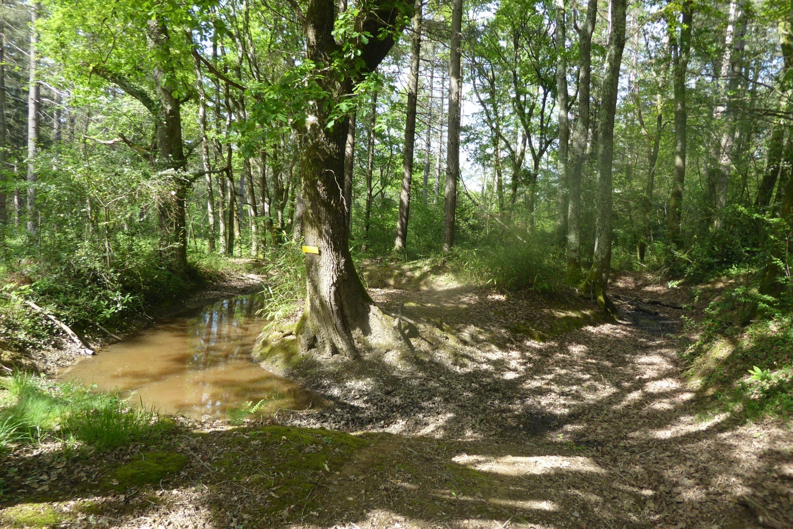 Malgré le temps lourd il fallait profiter de cette journée . Les chemins & les sentiers étaient déjà plus secs mais les cours d'eau avaient grossi !! Deux franchissement de ruisseau nous ont trempé jusqu'au genou. Les arbres qui sont tombés laissent apparaître le clocher de l'Abbaye de Tarasteix ,c'est l'Abbaye Notre Dame de l'Espérance, Un havre de paix. Un site exceptionnel à découvrir.Le Tumulus est engorgé d'eau ... Les blés sont levés et les sous-bois regorgent de chants d'oiseaux.Le Gr 101 a été nettoyé mais il reste des troncs d'arbres à franchir. Peu de randonneurs ce jour...Une très belle course cependant