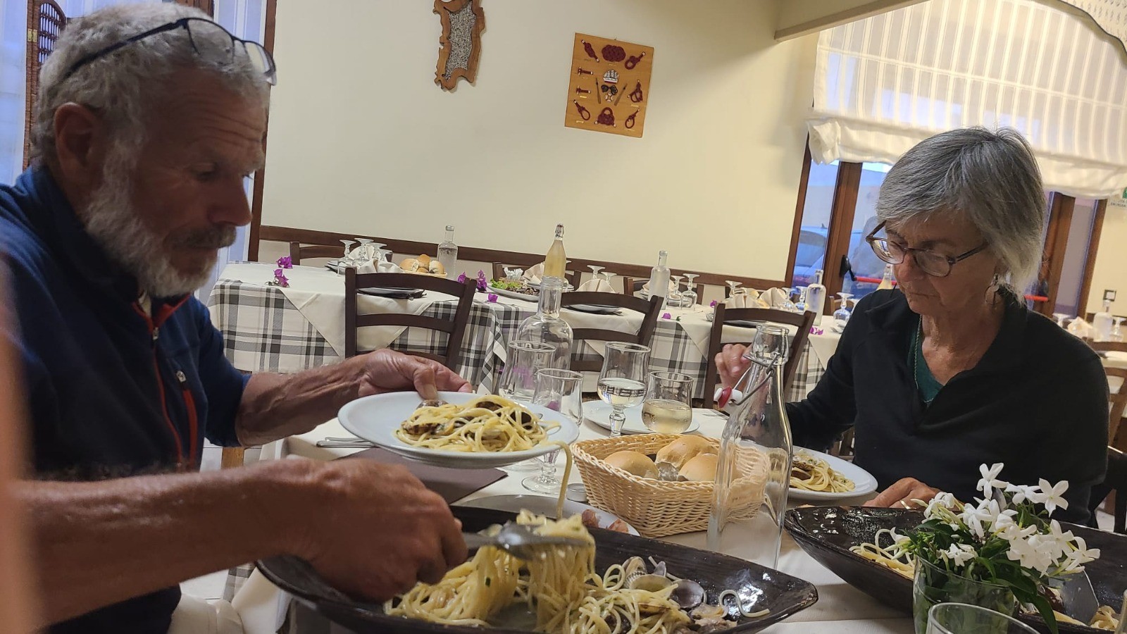 Restau à l'Ancre où nous seront finalement accepté bien que complet, si l'on prend tous des spaghettis à la vongole.