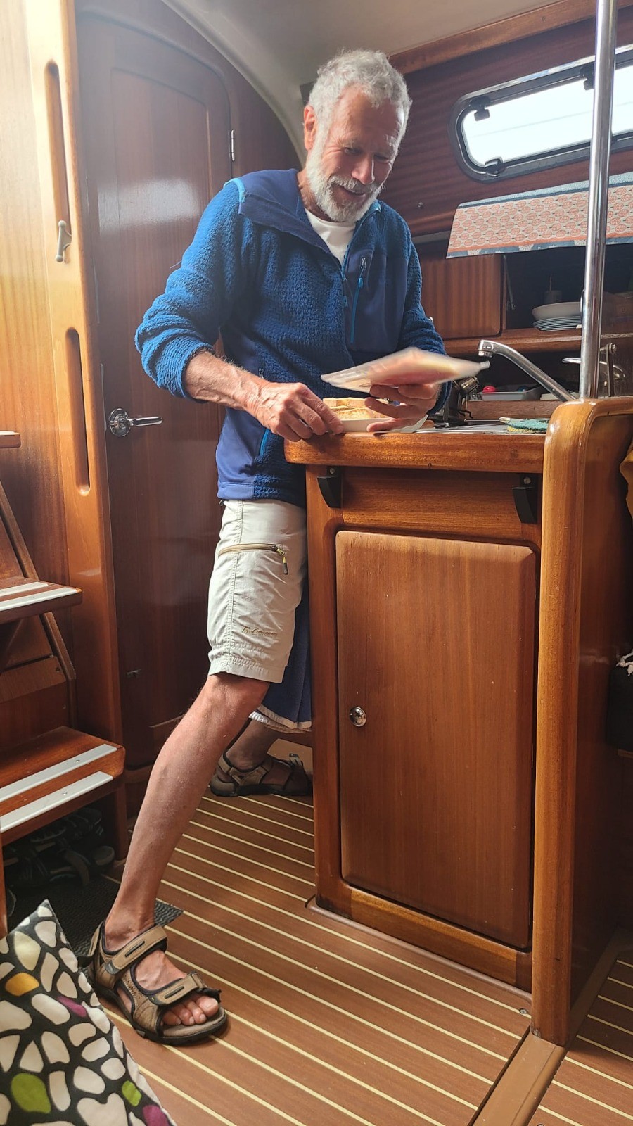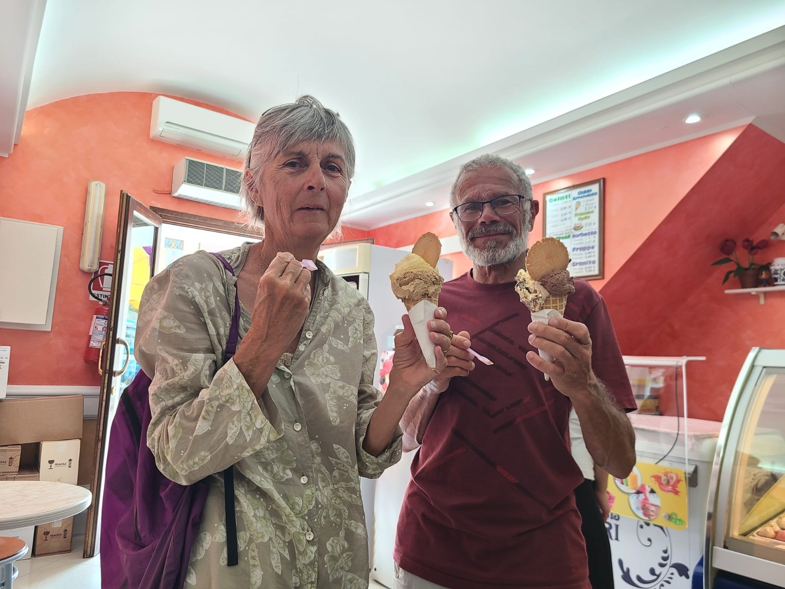 Mais revenons à la celle d'hier que nous avons passée au port. C'est fête nationale en Italie, aussi le marché est chuiso. Baignade pour Sylvie le matin et nous rentrons au bateau juste à temps pour éviter un orage torrentiel.