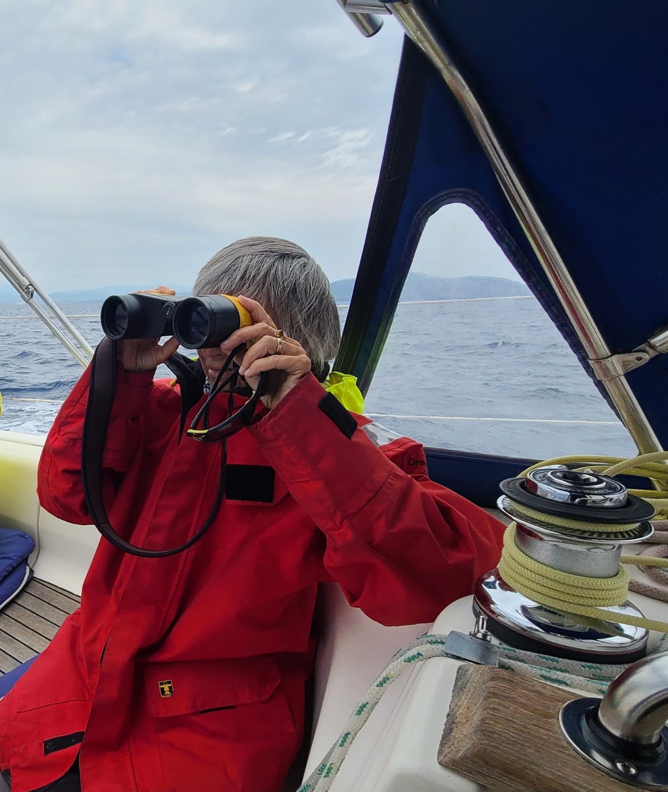 Revenons à notre navigation du jour. En fait il y a du vent mais de face. Nous mettons les voiles mais il faut tirer des bords. Comme il y a de la distance, nous allons arriver tard. Des flamants roses nous survolent. On passe par le rocher du taureau et ceux de la vache et du veau.