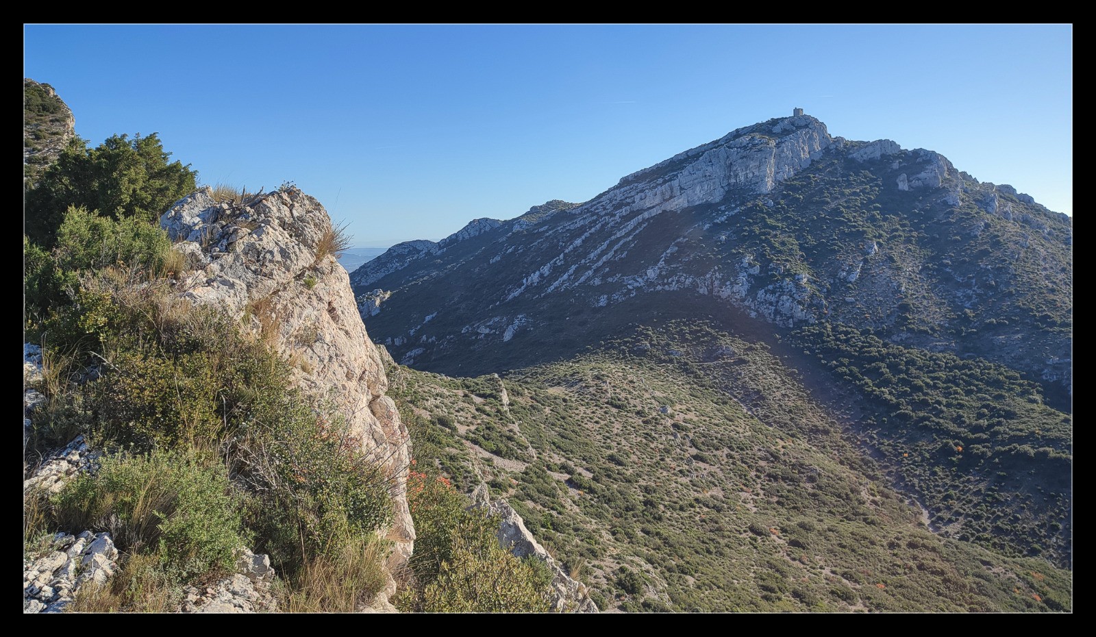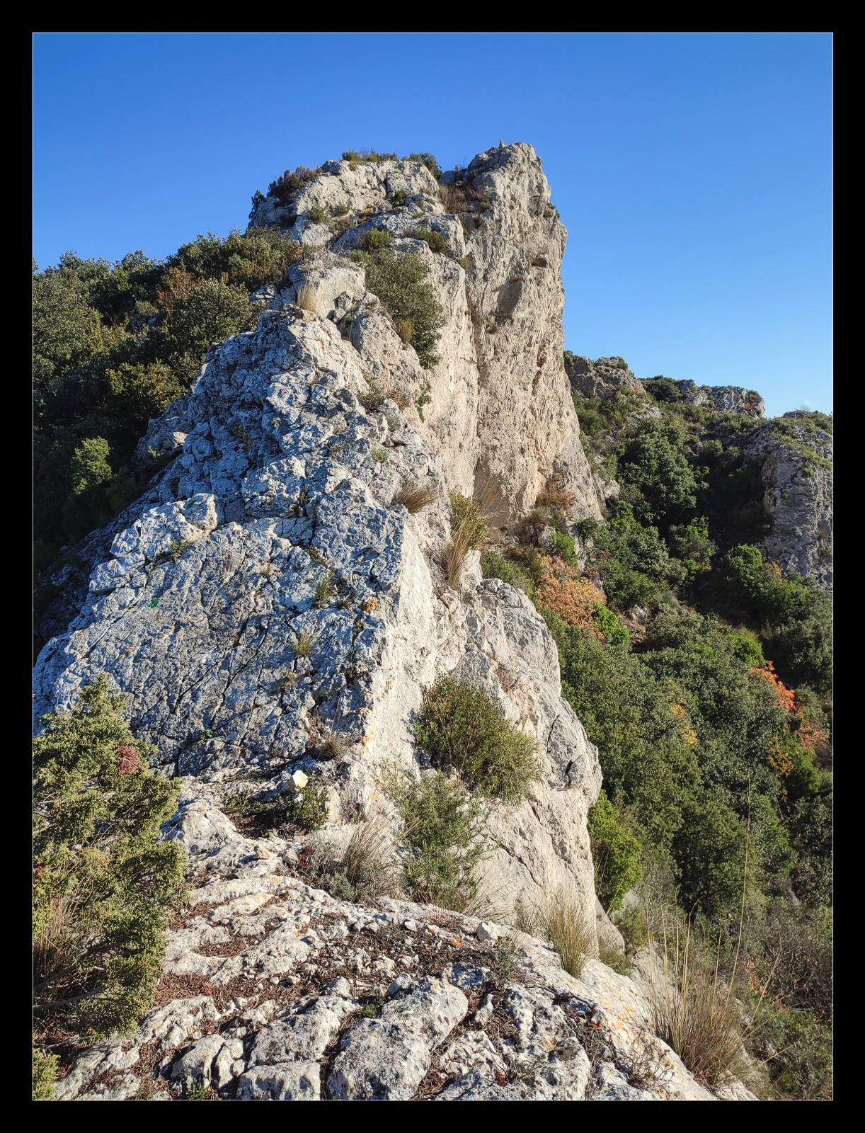 L'itinéraire suivi pour la descente de la Tour des Opies n'a aucun intérêt, il faut reprendre le chemin de la montée.