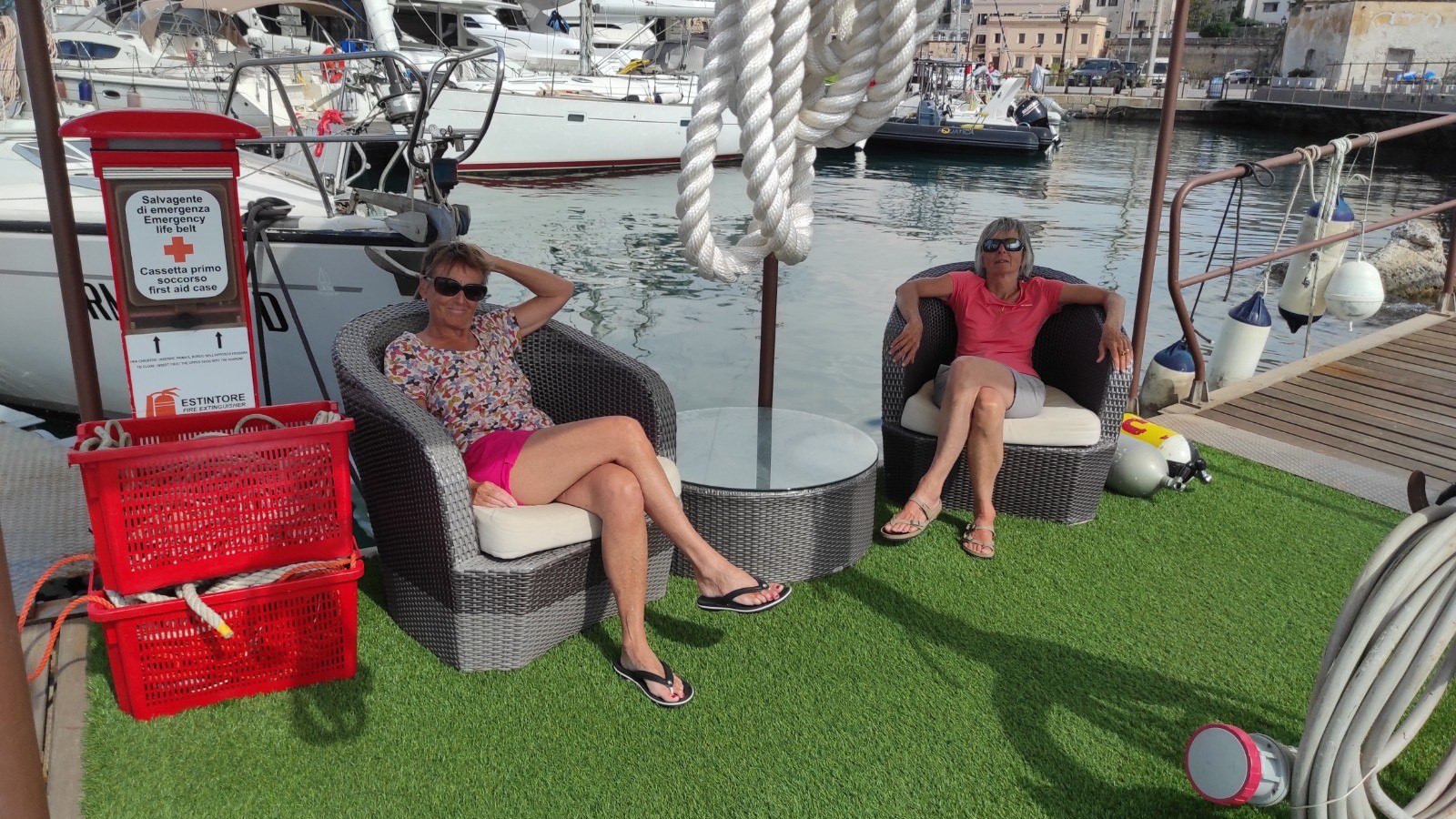 Nous arriverons au port d'alghero sans vent. Douche avec des musiciens rock.