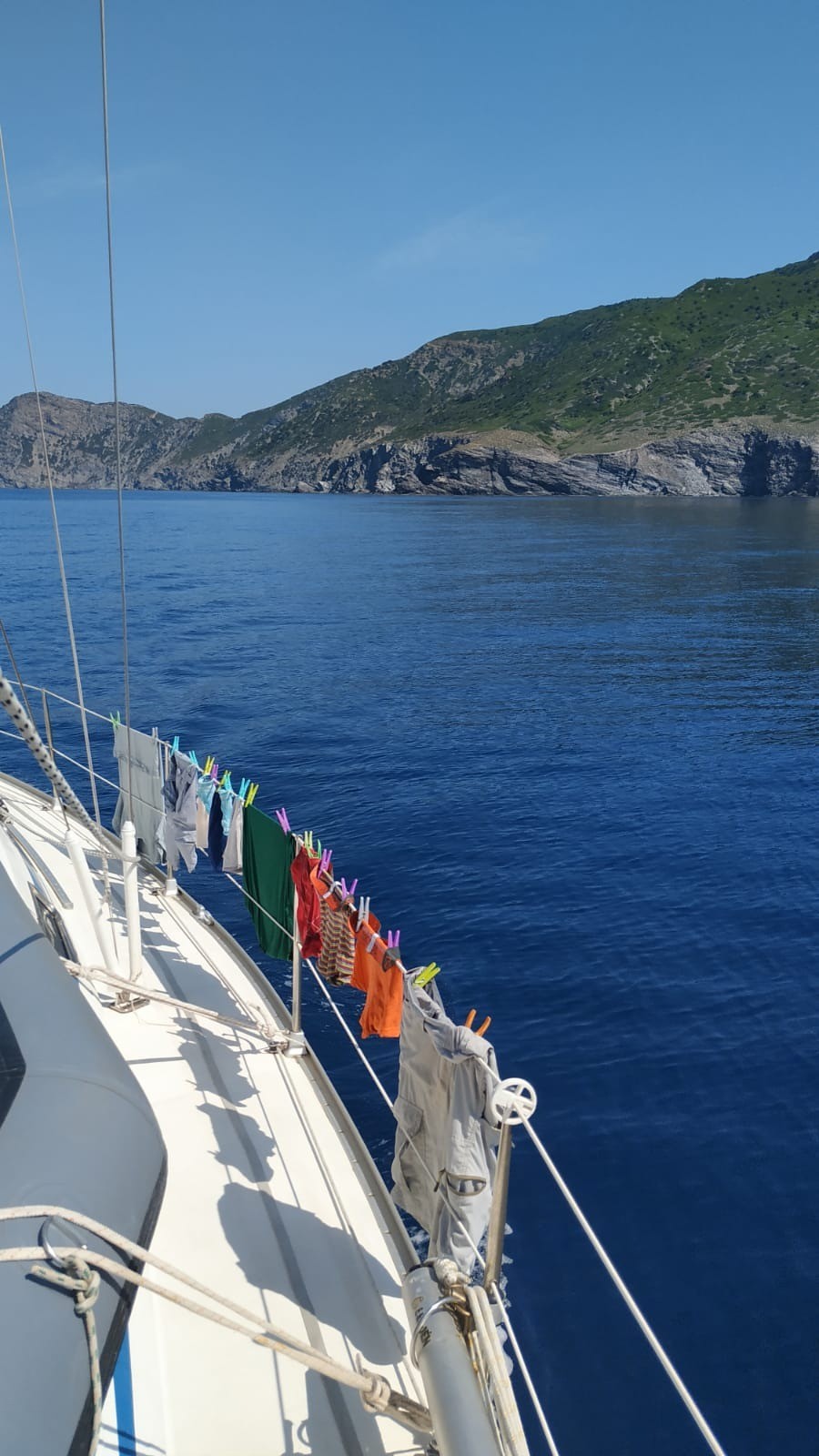 Nous avons profité du fait que nous allons au port ce soir pour faire une lessive.