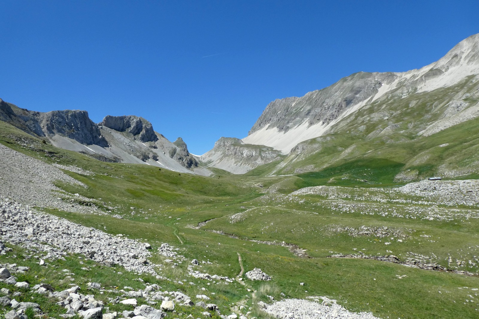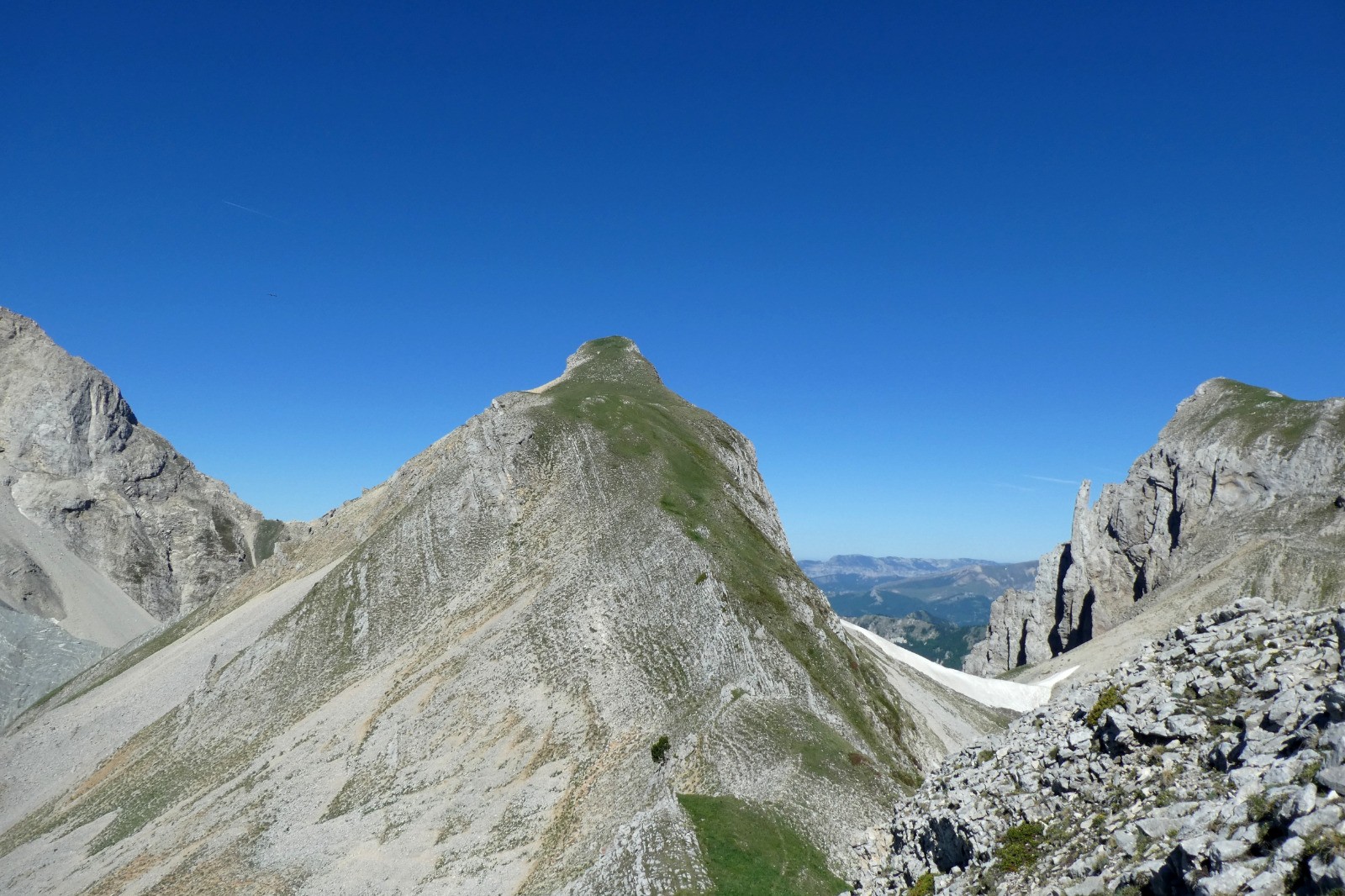 Après le col, parcours sauvage par le Haut Bouffet, la crête du vallon, la tête de Merlant et la tête du Jas des Arres. Remontée au col par le magnifique et reposant vallon des Aiguilles.