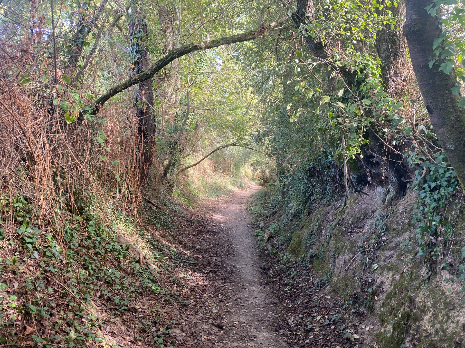 Quelques montées et bien sûr descentes, mais rien de très abrupt; la difficulté vient surtout du chemin parfois étroit.