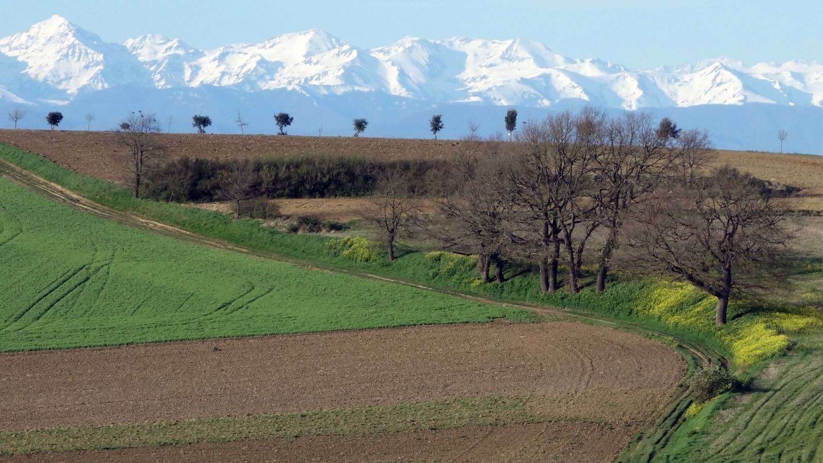 Ce chemin est particulièrement agréable au printemps quand les montagnes sont encore enneigées.