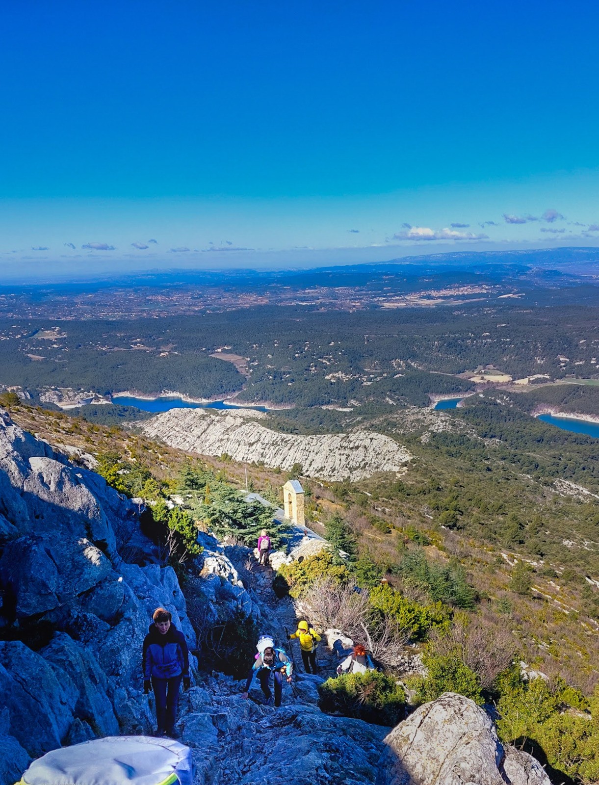Au départ du parking des Venturiers vous commencez à grimper sur un chemin peu difficile d'appui mais pentu. Le dernier tiers de la montée se fait en zigzag ce qui diminue la pente. La vue se dégage sur la chaine des pré Alpes et le mont Ventoux, le Lubéron, et on commence à surplomber le barrage de Bimont