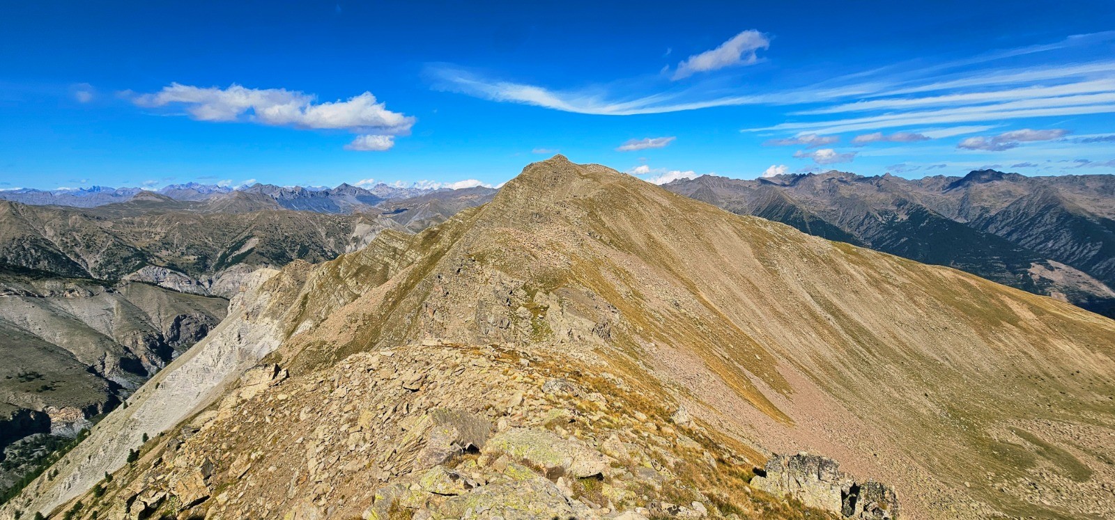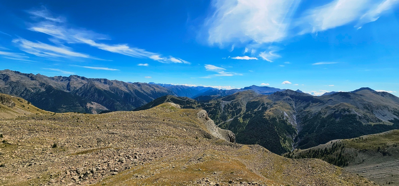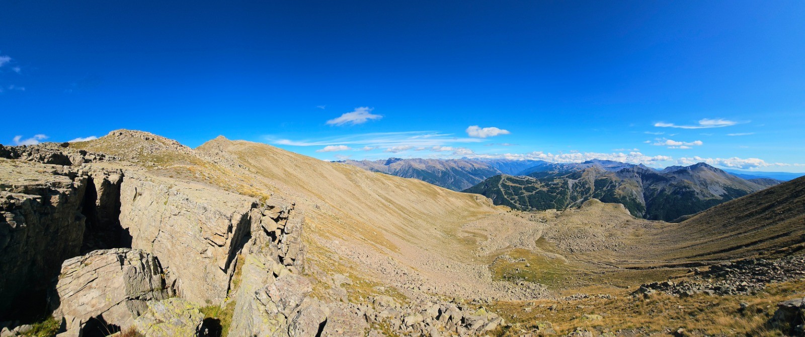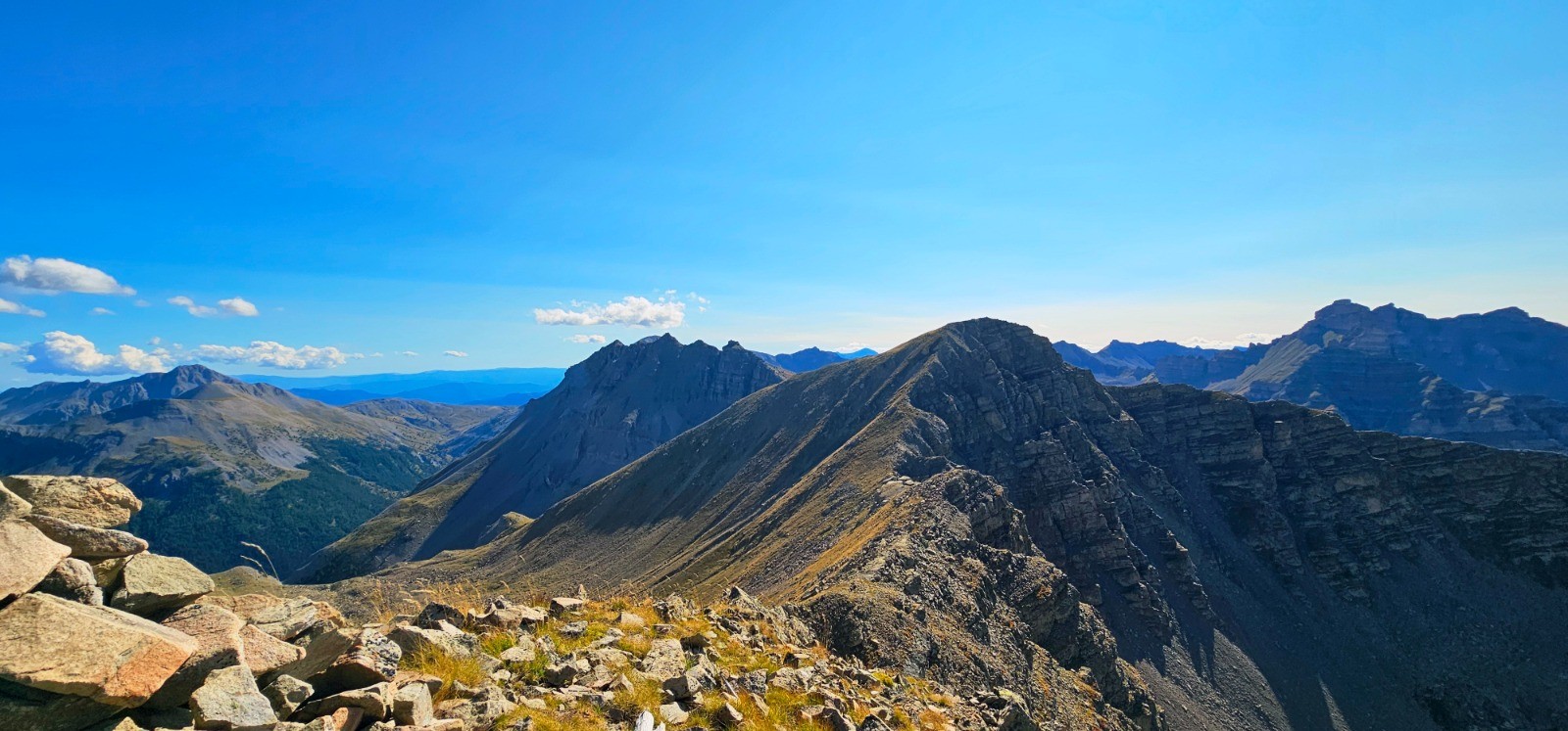 Depuis Pierre-Châtel, vue sud sur massif Gorgia / Bolofré avec cime de Pal en arrière-plan et col de Gialorgues à droite