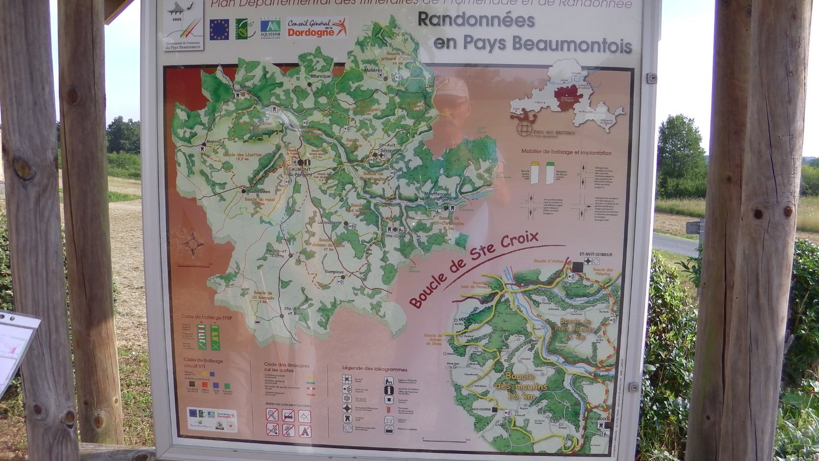 Départ: parking au pied de l'église se Ste Croix en Beaumontois - panneau avec la carte de la boucle.