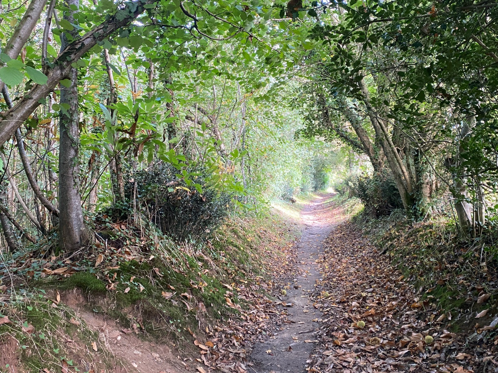 Chemins agricoles très ombragés ( parfois des tunnels végétaux - photo no 10 ) où les châtaigniers s'imposent.
