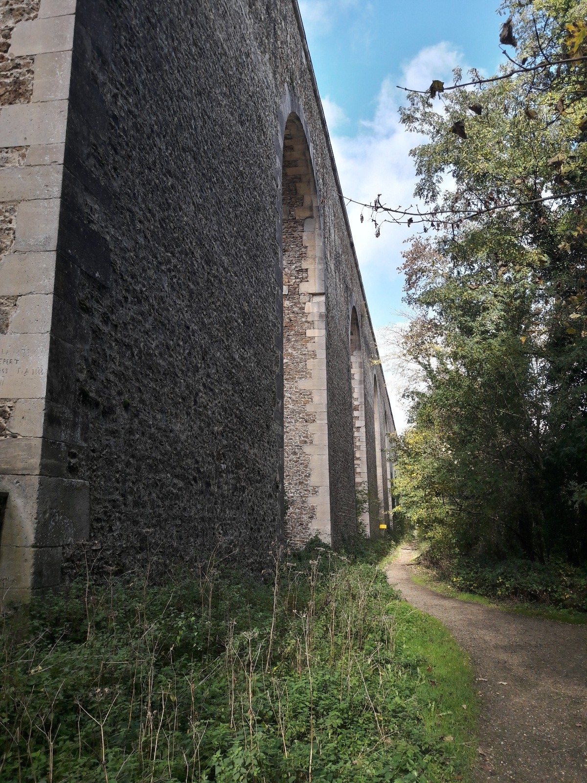 Point 7 - Depuis la digue, descendez à gauche et longez la Bièvre jusqu’au parking du Pré-Saint-Jean. Traversez la rue, poursuivez par la sente en bordure de la Bièvre, puis écartez-vous à droite pour prendre l’impasse des Arcades à gauche. Coupez la D938, descendez sous le pont-aqueduc, et gagnez Vauptin. Parcourez à droite la rive gauche de la Bièvre, puis la rue du Petit-Jouy à gauche.