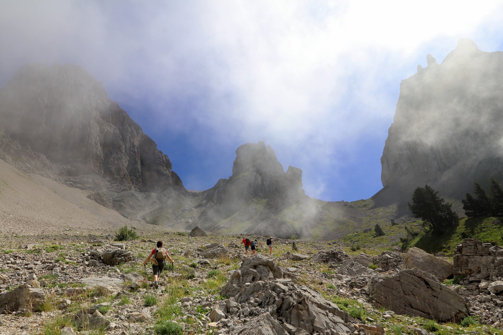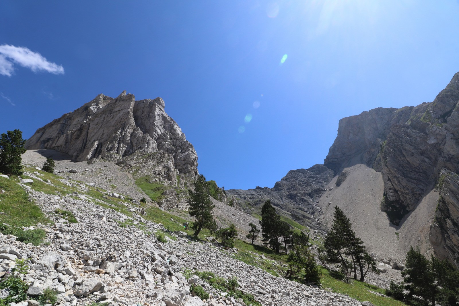 Col de Festre mais celui bien marqué qui part sur la droite. Après une centaine de mètres, il s'élève très rapidement plein sud jusqu'à un col (cairn).