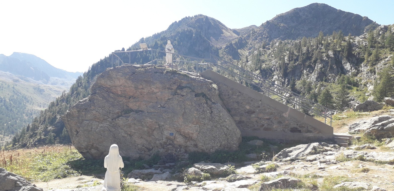 Versant italien depuis Pas de Ste Anne avec sanctuaire en arrière-plan